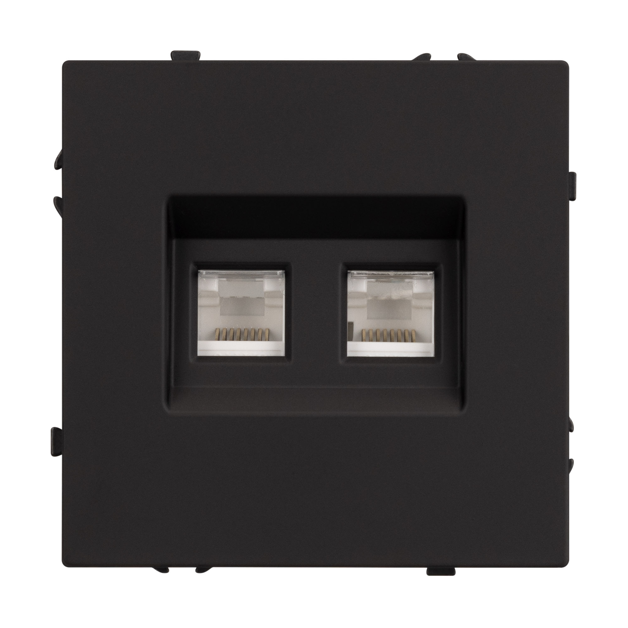 Механизм компьютерной розетки на 2 поста 6-й категории. Цвет - черный, с Soft-Touch покрытием. Без фронтальной рамки. Уровень пылевлагозащиты IP20. Тип подключаемого разъема - RJ45. Розетка устанавливается в стандартный подрозетник круглого сечения диаметром 60мм. Габаритные размеры: длина 71 мм, ширина 71 мм, высота 42 мм. Гарантийный срок 10 лет.