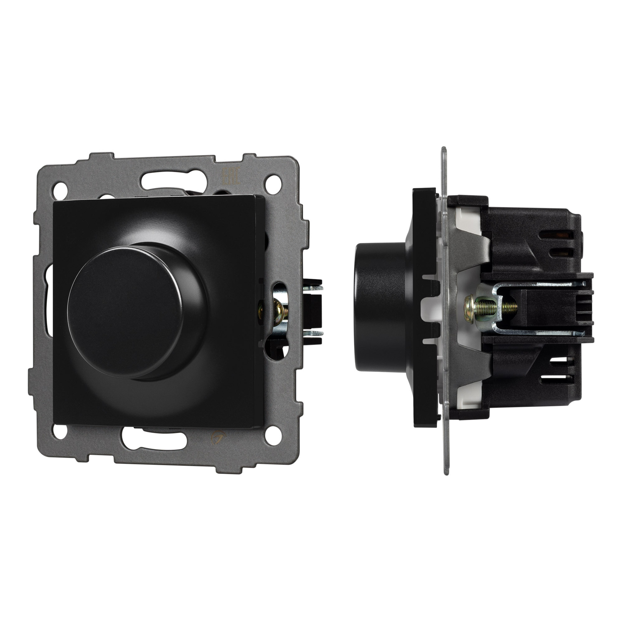 Механизм регулировки света на 1 пост. Цвет - черный. Без фронтальной рамки. Уровень пылевлагозащиты IP20. Механизм устанавливается в стандартный круглый подрозетник. Максимальная нагрузка 500 Вт только для ламп накаливания и галогенных, 150 Вт только для энергосберегающих и светодиодных ламп. Габаритные размеры: длина 71 мм, ширина 71 мм, высота 52 мм. Гарантийный срок 10 лет. *Диммирование по переднему фронту.