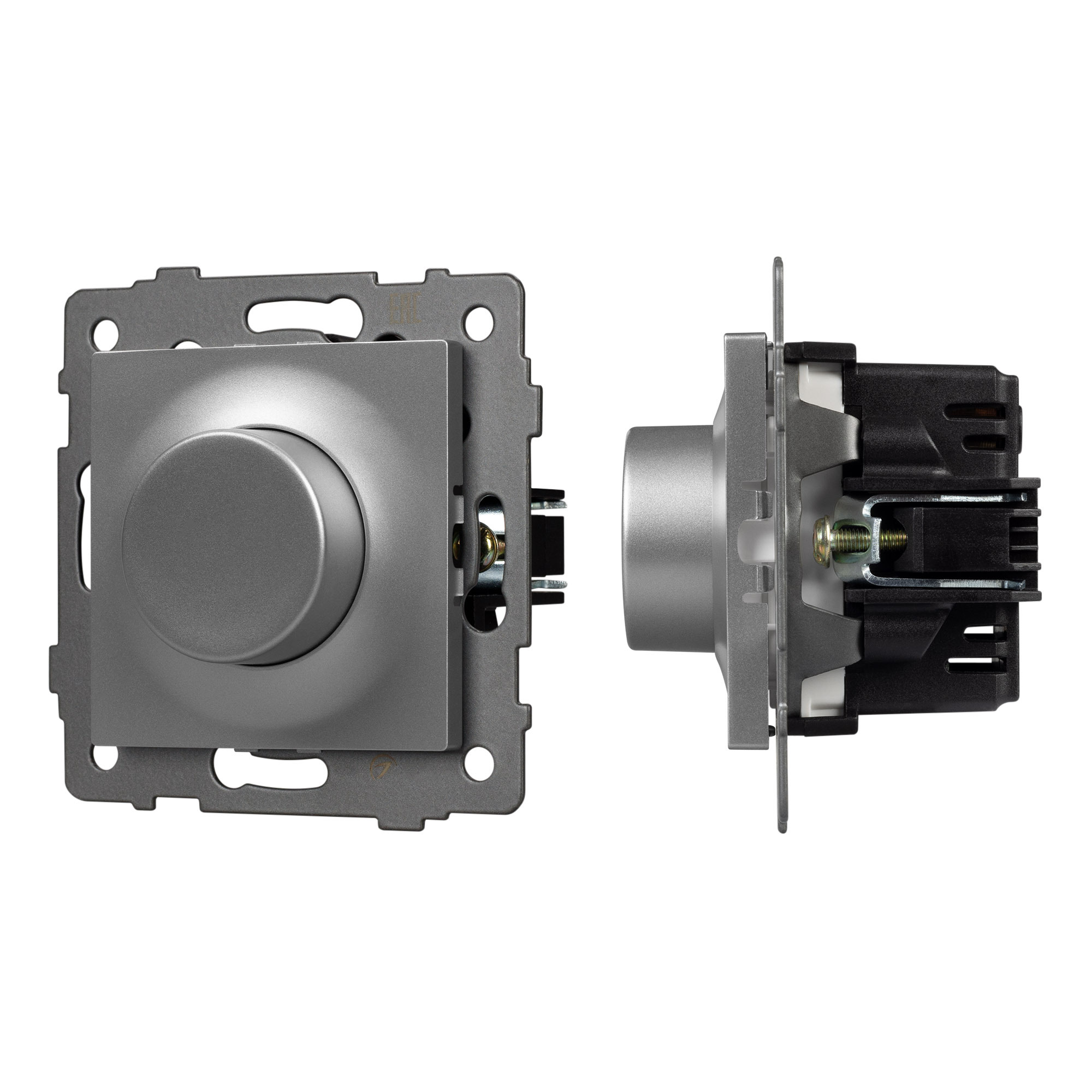 Механизм регулировки света на 1 пост. Цвет - серый. Без фронтальной рамки. Уровень пылевлагозащиты IP20. Механизм устанавливается в стандартный круглый подрозетник. Максимальная нагрузка 500 Вт только для ламп накаливания и галогенных, 150 Вт только для энергосберегающих и светодиодных ламп. Габаритные размеры: длина 71 мм, ширина 71 мм, высота 52 мм. Гарантийный срок 10 лет. *Диммирование по переднему фронту.