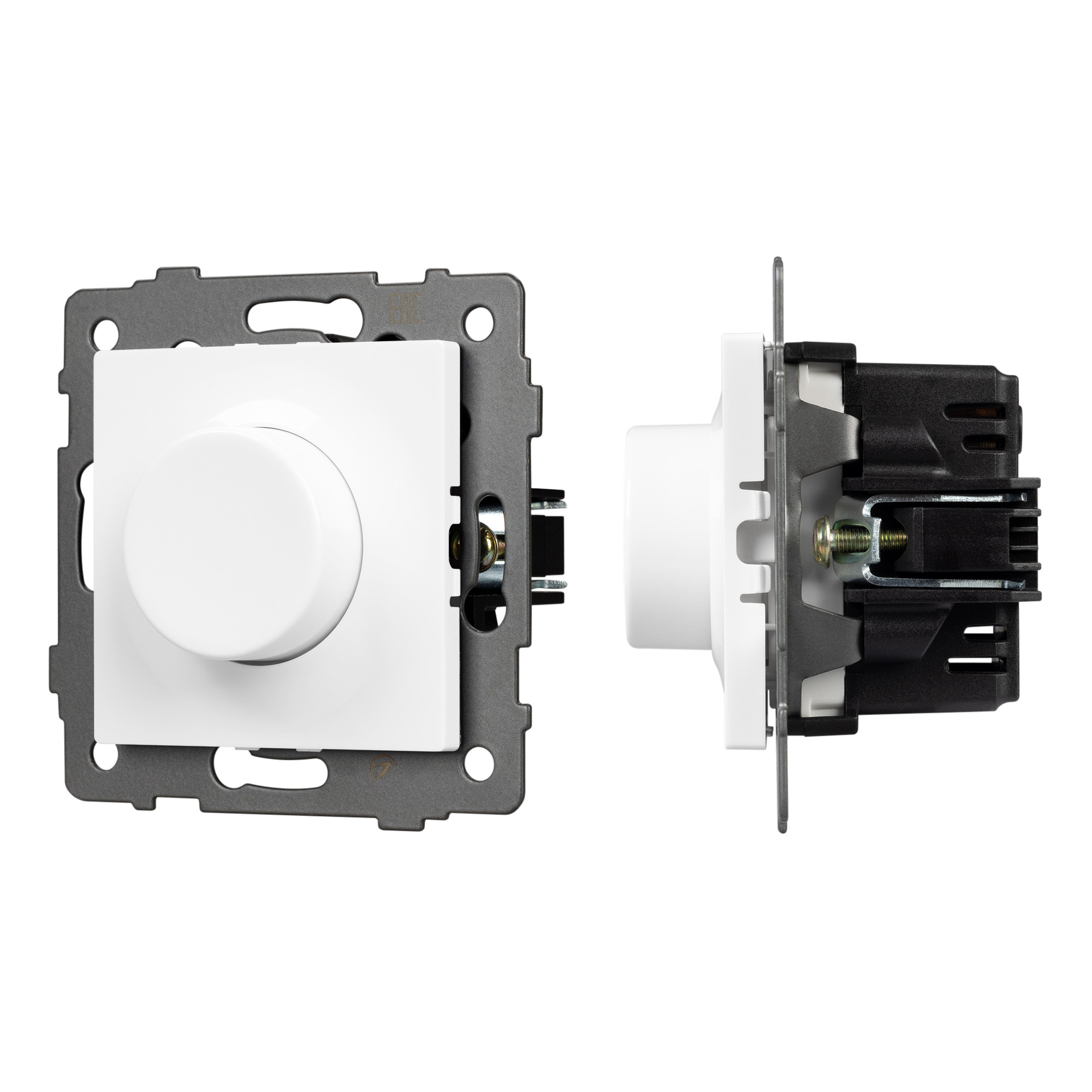Механизм регулировки света на 1 пост. Цвет - белый. Без фронтальной рамки. Уровень пылевлагозащиты IP20. Механизм устанавливается в стандартный круглый подрозетник. Максимальная нагрузка 500 Вт только для ламп накаливания и галогенных, 150 Вт только для энергосберегающих и светодиодных ламп. Габаритные размеры: длина 71 мм, ширина 71 мм, высота 52 мм. Гарантийный срок 10 лет. *Диммирование по переднему фронту.