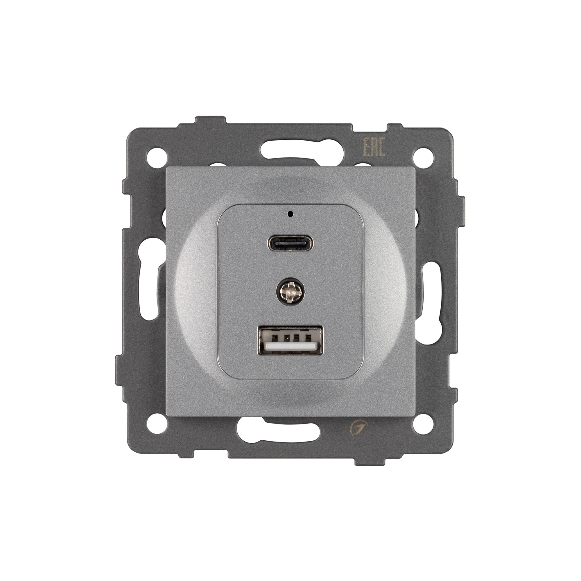 Механизм USB розетки SCT-MUAC-PL-GR-V (5V, 3A, QC4) (Arlight, -)