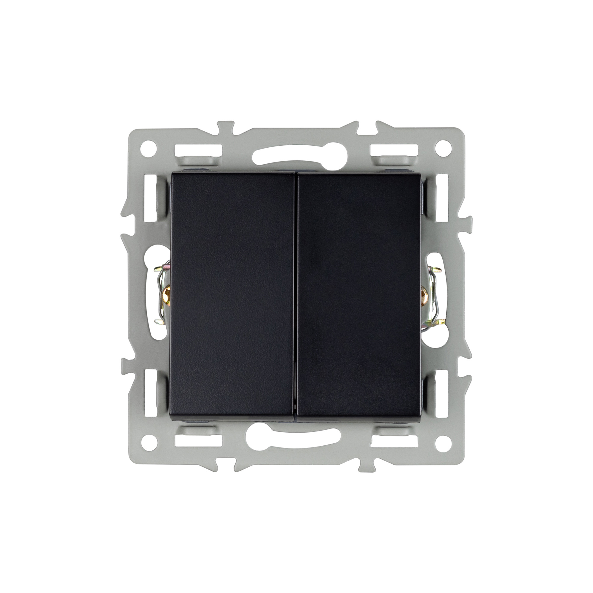 Механизм выключателя клавишный на 1 пост 2 клавиши (проходной), с суппортом из алюминия. Цвет - черный. Степень пылевлагозащиты - IP20. Устанавливается в стандартный круглый подрозетник 220V (Арт.044895). Рабочее напряжение 110-250V. Макс. ток нагрузки 16А. Габаритные размеры: длина 74 мм, ширина 74 мм, высота 35 мм. Гарантийный срок 10 лет.