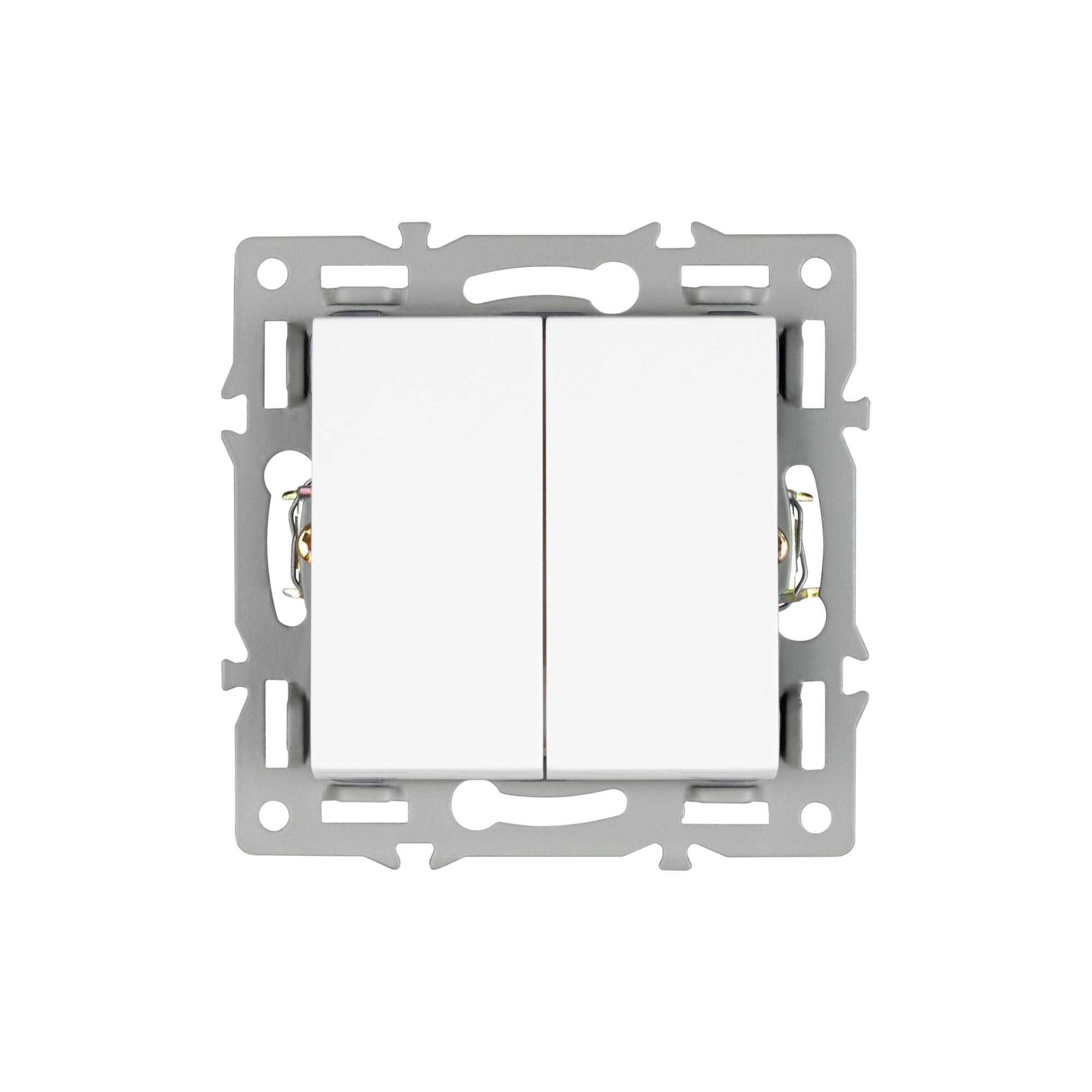 Механизм выключателя клавишный на 1 пост 2 клавиши (проходной), с суппортом из алюминия. Цвет - белый. Степень пылевлагозащиты - IP20. Устанавливается в стандартный круглый подрозетник 220V (Арт.044895). Рабочее напряжение 110-250V. Макс. ток нагрузки 16А. Габаритные размеры: длина 74 мм, ширина 74 мм, высота 35 мм. Гарантийный срок 10 лет.