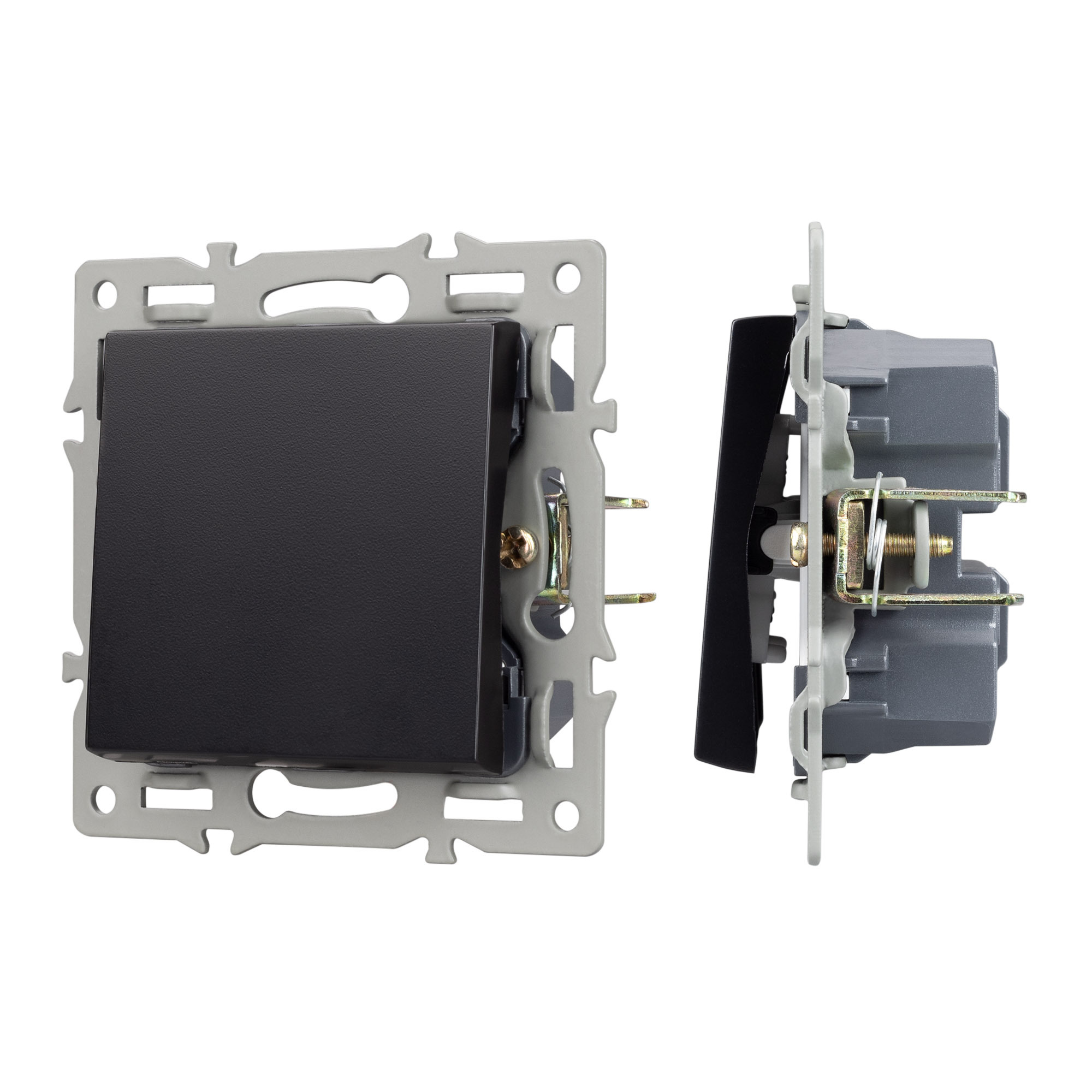 Механизм выключателя клавишный на 1 пост 1 клавиша (перекрёстный), с суппортом из алюминия. Цвет - черный. Степень пылевлагозащиты - IP20. Устанавливается в стандартный круглый подрозетник 220V (Арт.044895). Рабочее напряжение 110-250V. Макс. ток нагрузки 16А. Габаритные размеры: длина 74 мм, ширина 74 мм, высота 35 мм. Гарантийный срок 10 лет.