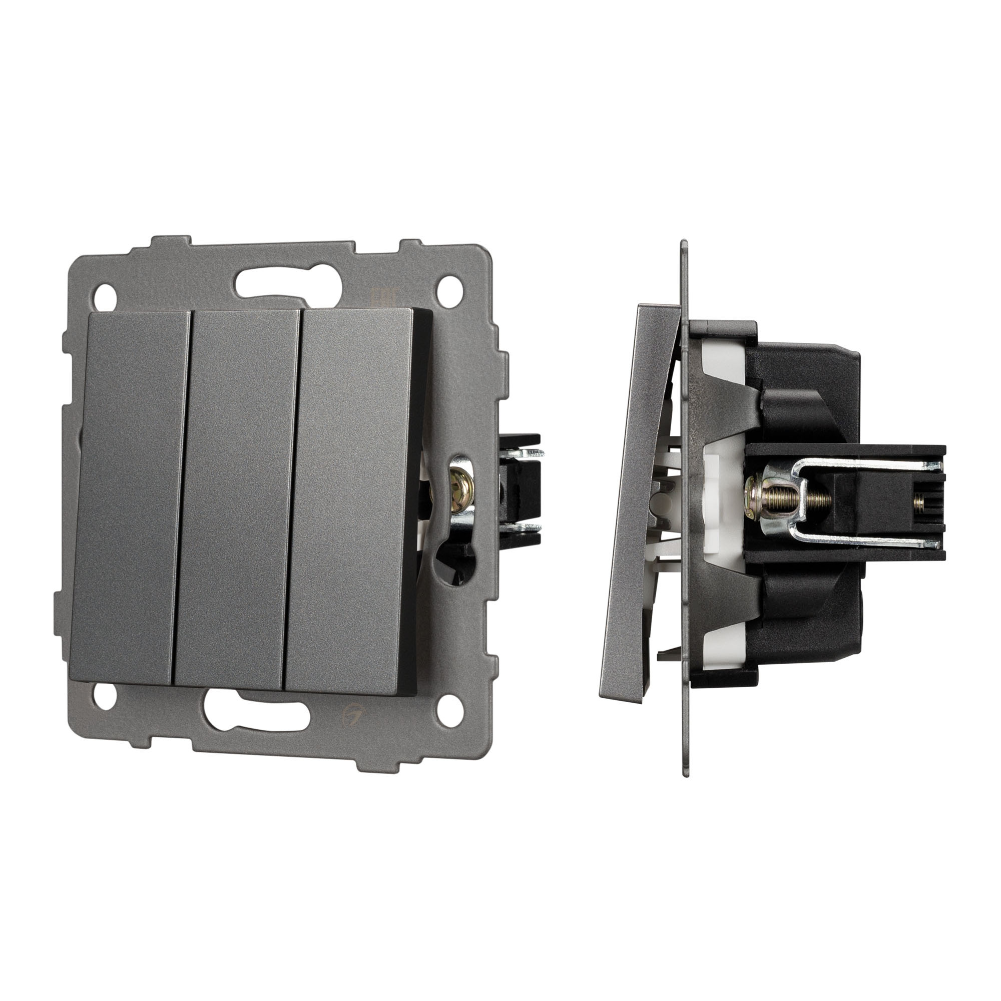 Механизм выключателя трехклавишный непроходной SWT-MK03-PL-GR-V (250V, 10A) (Arlight, -)
