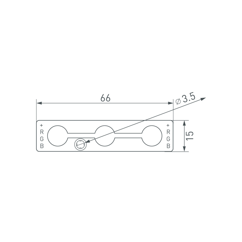 Герметичный светодиодный модуль IP67, RGB, напряжение 12 В, мощность 0.72 Вт, 3 светодиода SMD 5050, угол 120°. 20 шт на проводе, расстояние между центрами модулей 175 мм, длина провода между модулями 109 мм, рекомендуемая глубина установки 50–150 мм. Размер 66х15x4.9 мм. Гарантия 3 года.