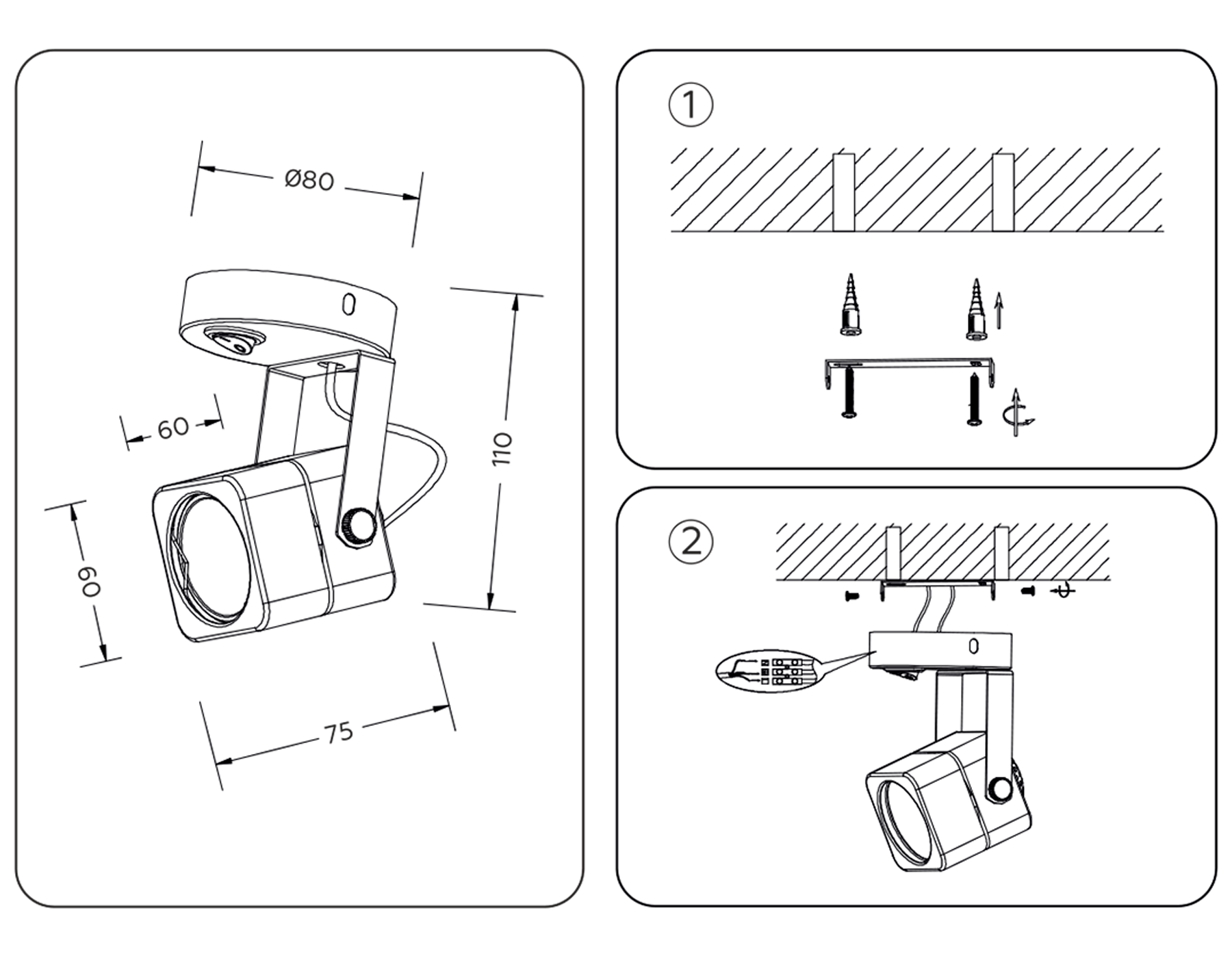 Накладной поворотный светильник с выключателем TA110 BK черный GU10 D80*130*D60