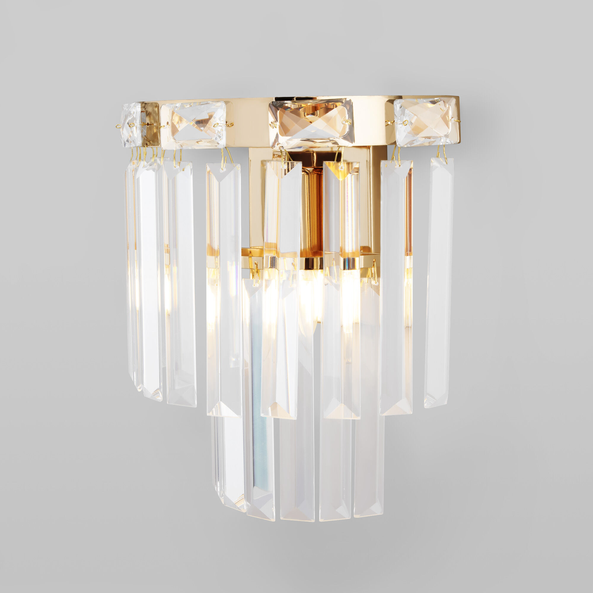 Бра с хрустальным декором 10130/1 из коллекции Elegante станет ярким световым акцентом в классических интерьерах и создаст качественное освещение на площади 2 м². Изящные чаши подсвечников украшены хрустальными подвесками, которые искрятся в лучах света, наполняя помещение выразительным блеском.