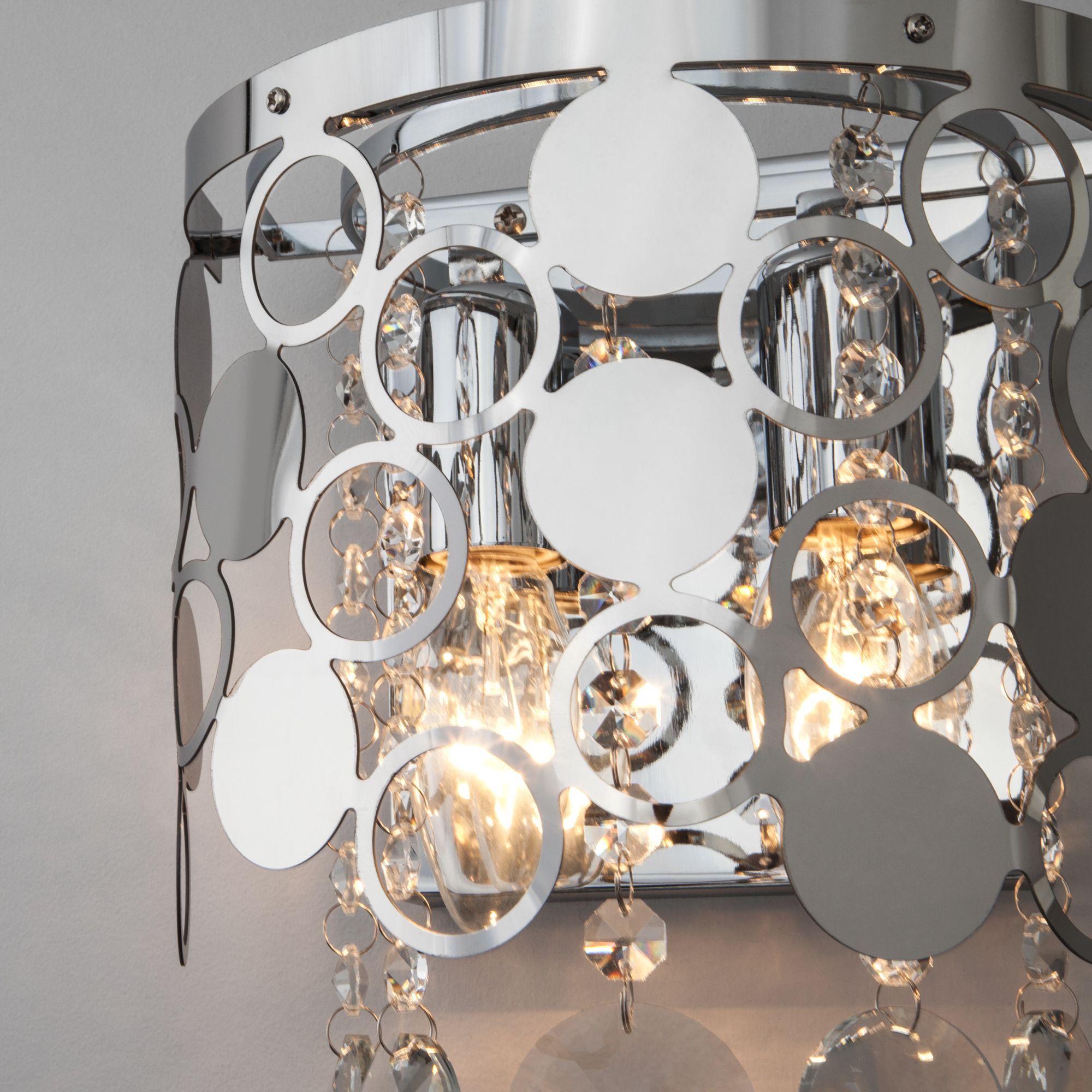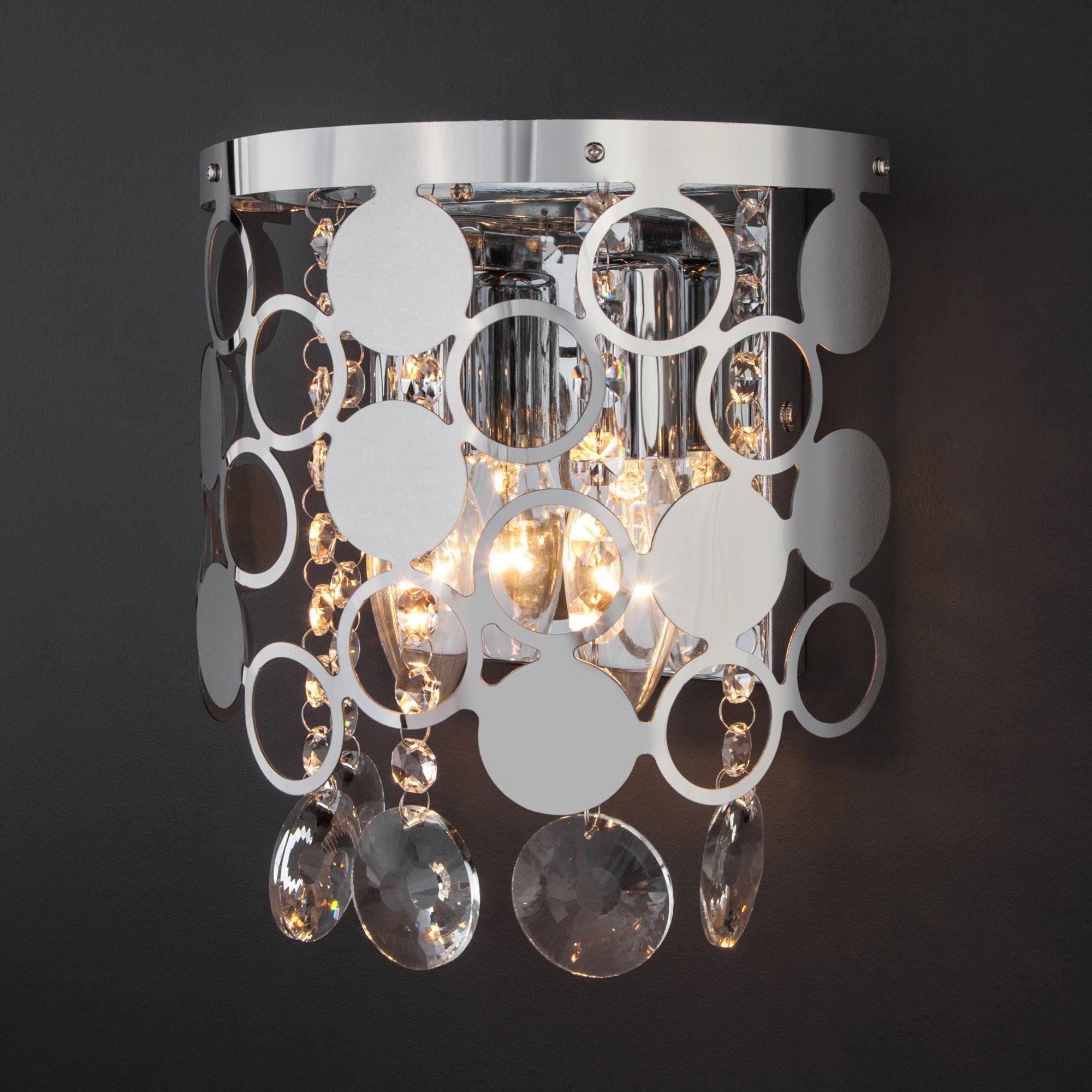 Настенный светильник с хрусталем 10114/2 хром/прозрачный хрусталь Strotskis станет ярким световым акцентом в классических интерьерах и создаст качественное освещение на площади 3 м². Эффектный светильник украшен хрустальными подвесками, которые искрятся в лучах света, наполняя помещение выразительным блеском. В качестве источника света используются сменные лампы с цоколем E14. Патрон рассчитан на максимальную мощность ламп накаливания 60 Вт.