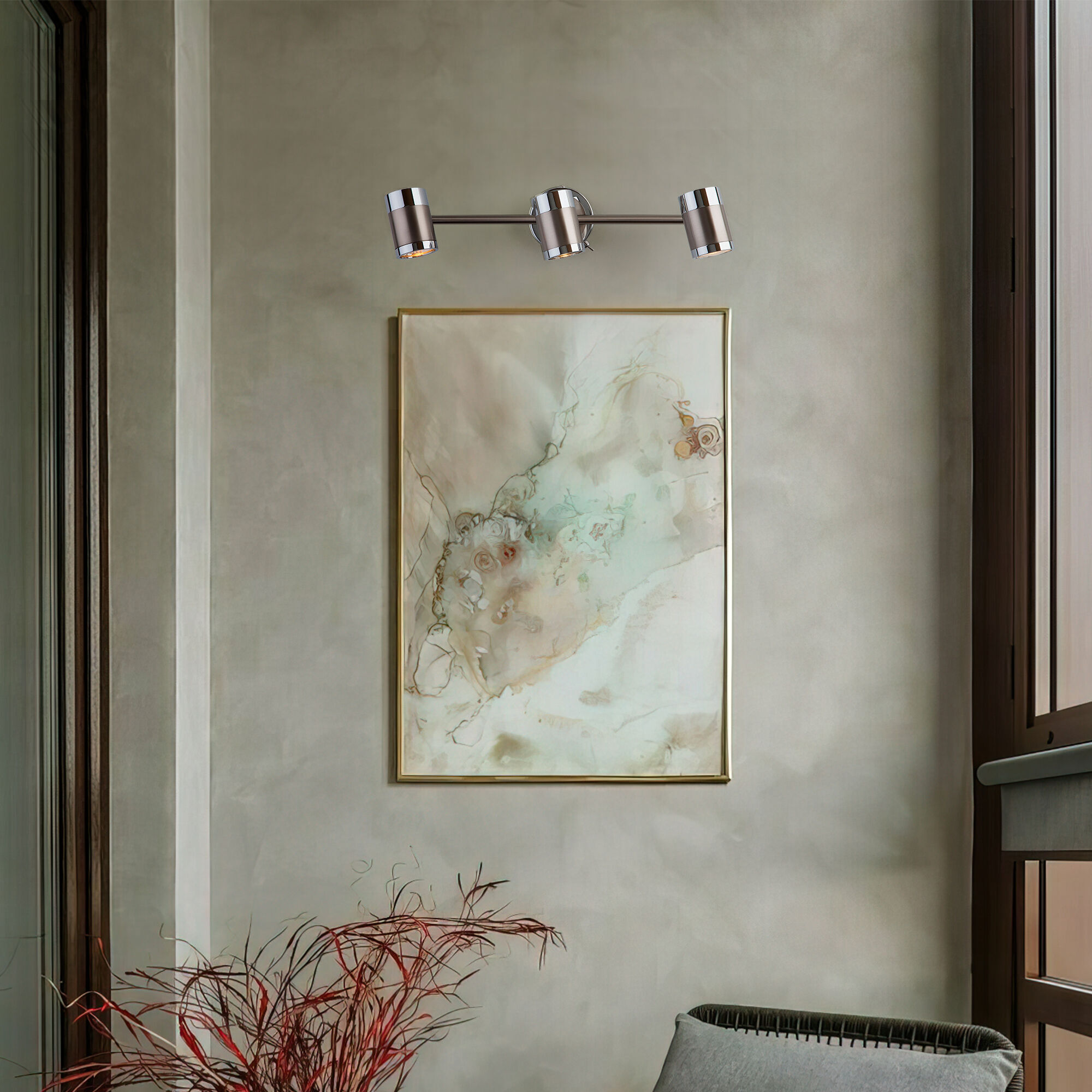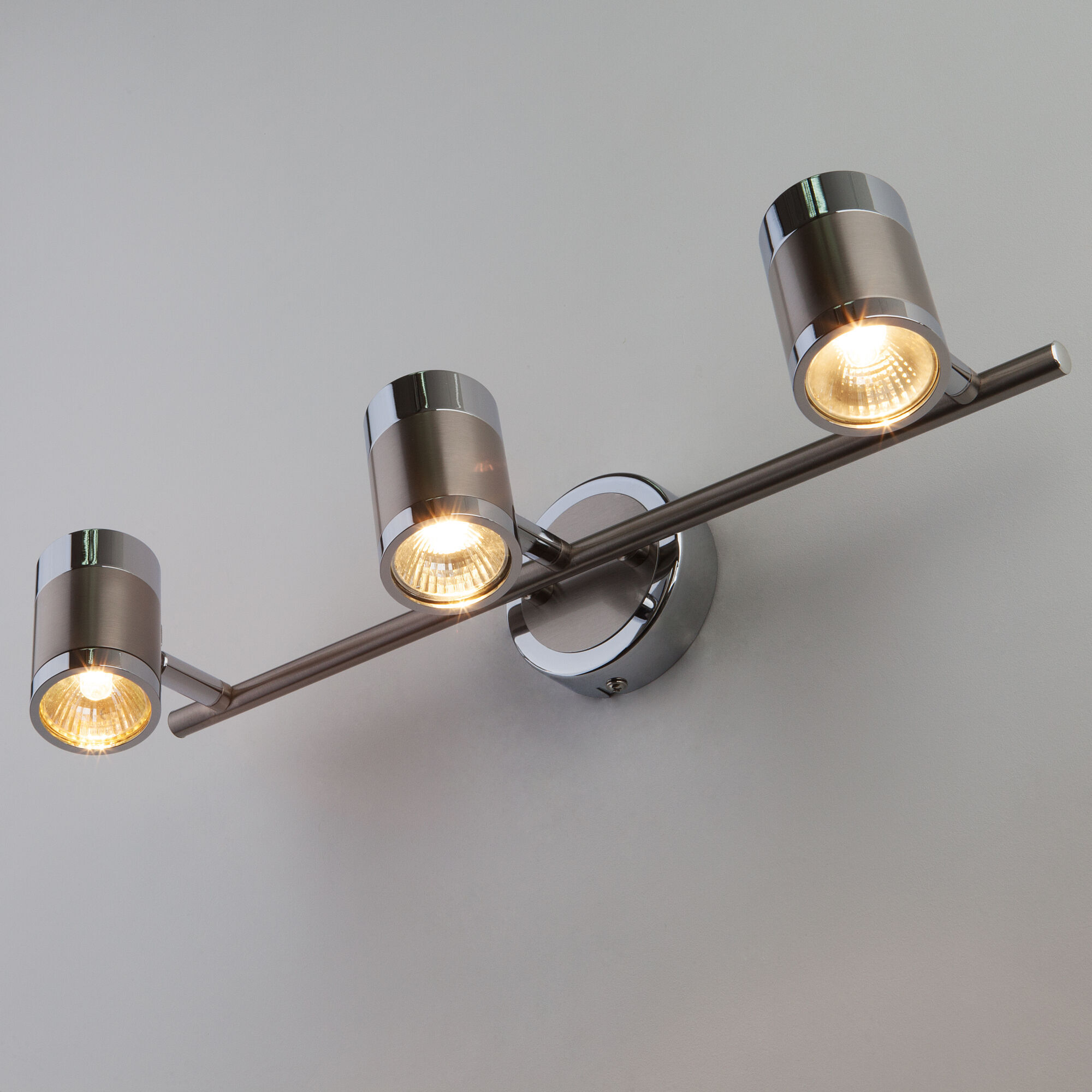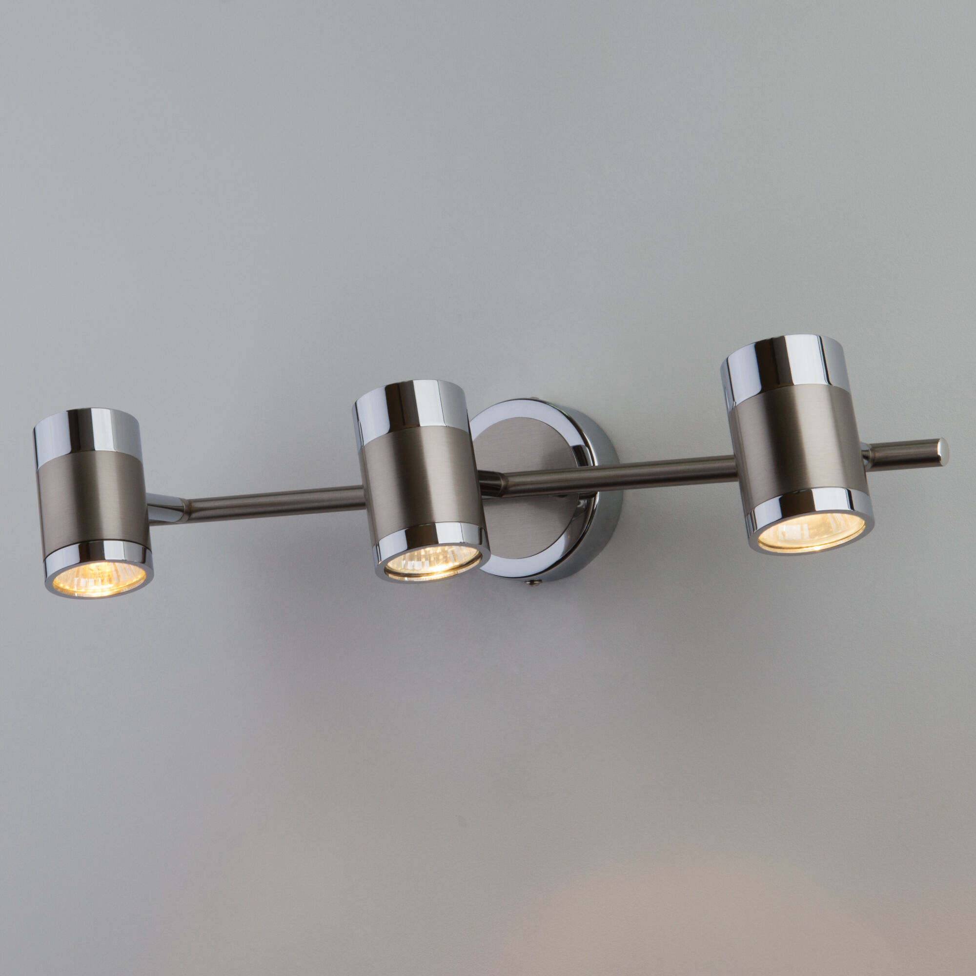 Настенный светильник с поворотными плафонами 20058/3 перламутровый сатин создаст качественное дополнительное освещение и станет ярким дополнением к основному источнику света. Благодаря поворотным металлическим плафонам можно направлять световой поток в нужном направлении. В качестве источника света используются сменные лампы с цоколем GU10. Патрон рассчитан на максимальную мощность ламп накаливания 50 Вт.