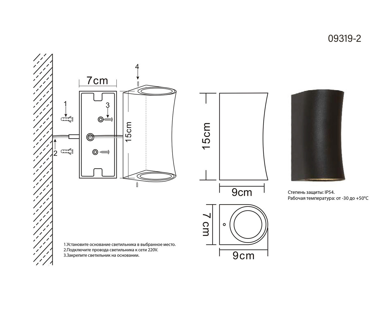 Настенный светильник уличный Дани черный w7*9 h15 Led 2*5W (3000K)