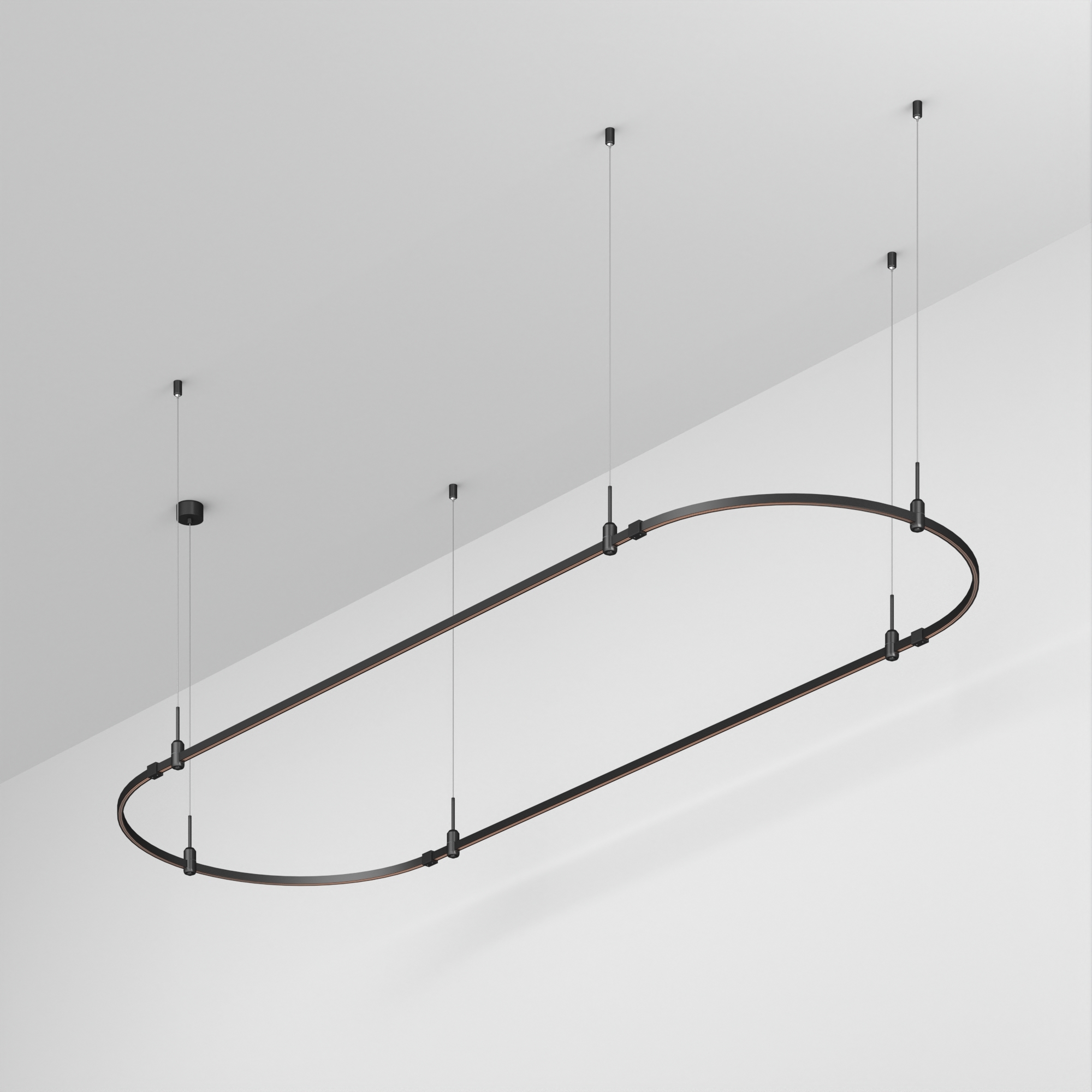 Подвесная конструкция APRIORI, форма овал. В комплекте треки с аксессуарами и гибкими подвесами. DC48V. Материал алюминий, цвет черный. Размер ДxШxВ: 3000x1000x22мм. Светильники и источники питания приобретаются отдельно.