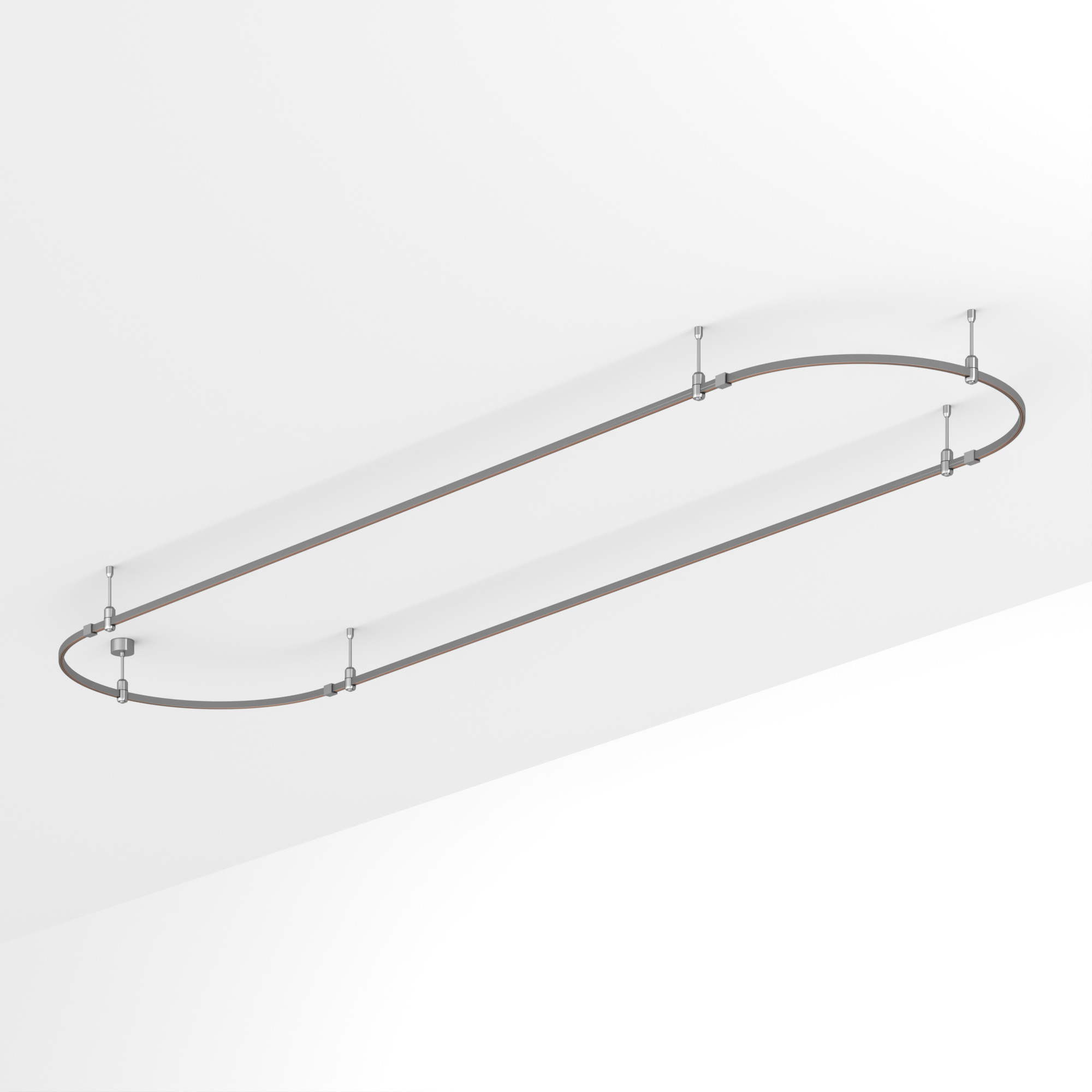 Подвесная конструкция APRIORI, форма овал. В комплекте треки с аксессуарами и жесткими подвесами длиной 200мм. DC48V. Материал алюминий, цвет титан. Размер ДxШxВ: 4000x1000x22мм. Светильники и источники питания приобретаются отдельно.