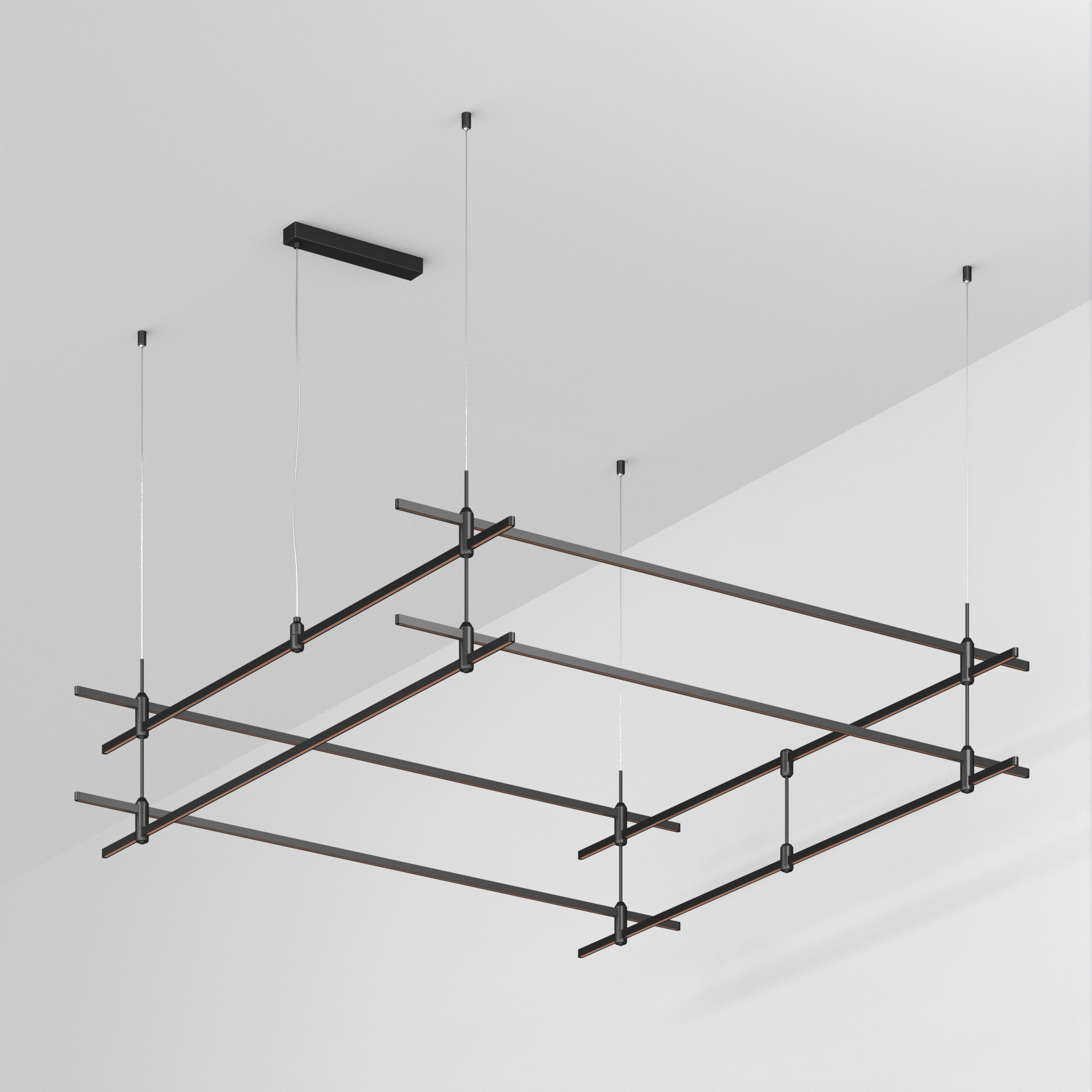 Подвесная конструкция APRIORI, форма параллелепипед. В комплекте треки с аксессуарами и гибкими подвесами. DC48V. Материал алюминий, цвет черный. Размер ДxШxВ: 2000x2000x300мм. Светильники и источники питания приобретаются отдельно.