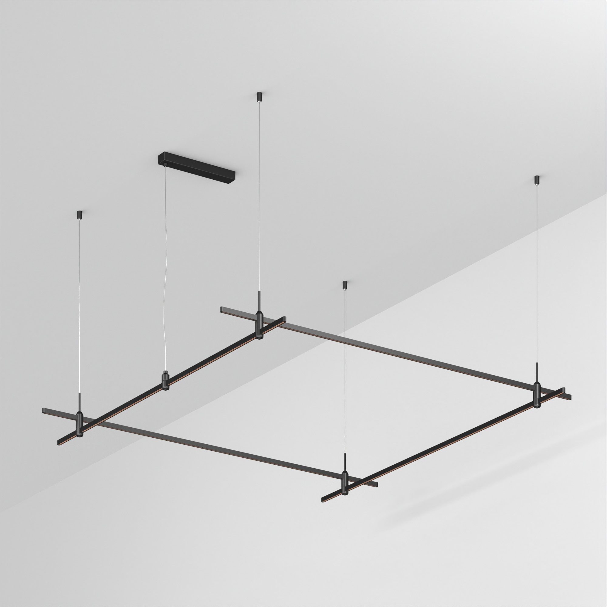 Подвесная конструкция APRIORI, форма квадрат. В комплекте треки с аксессуарами и гибкими подвесами. DC48V. Материал алюминий, цвет черный. Размер ДxШxВ: 2000x2000x22мм. Светильники и источники питания приобретаются отдельно.