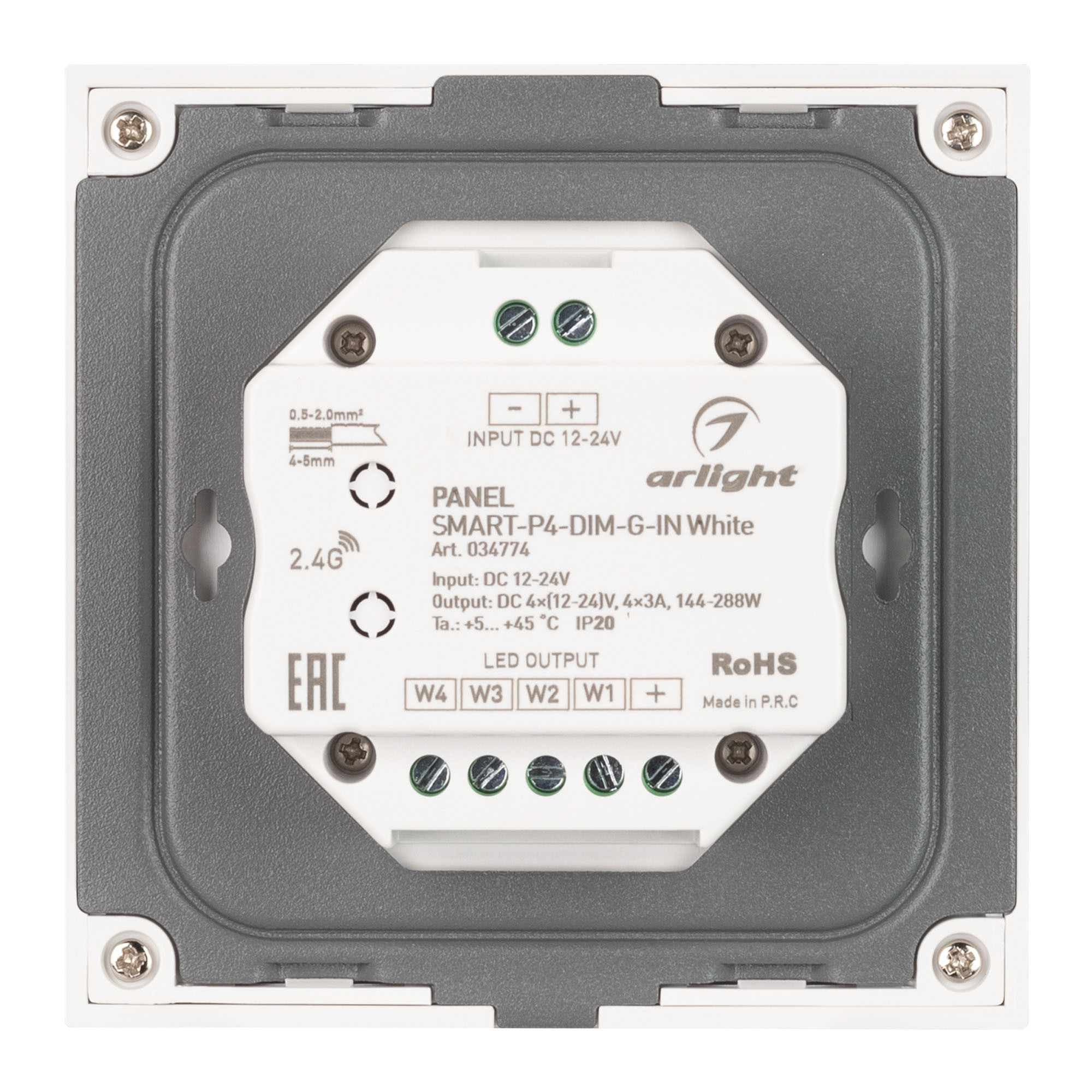 Панель SMART-P4-DIM-G-IN White (12-24V, 4x3A, Sens, 2.4G) (Arlight, IP20 Пластик, 5 лет)
