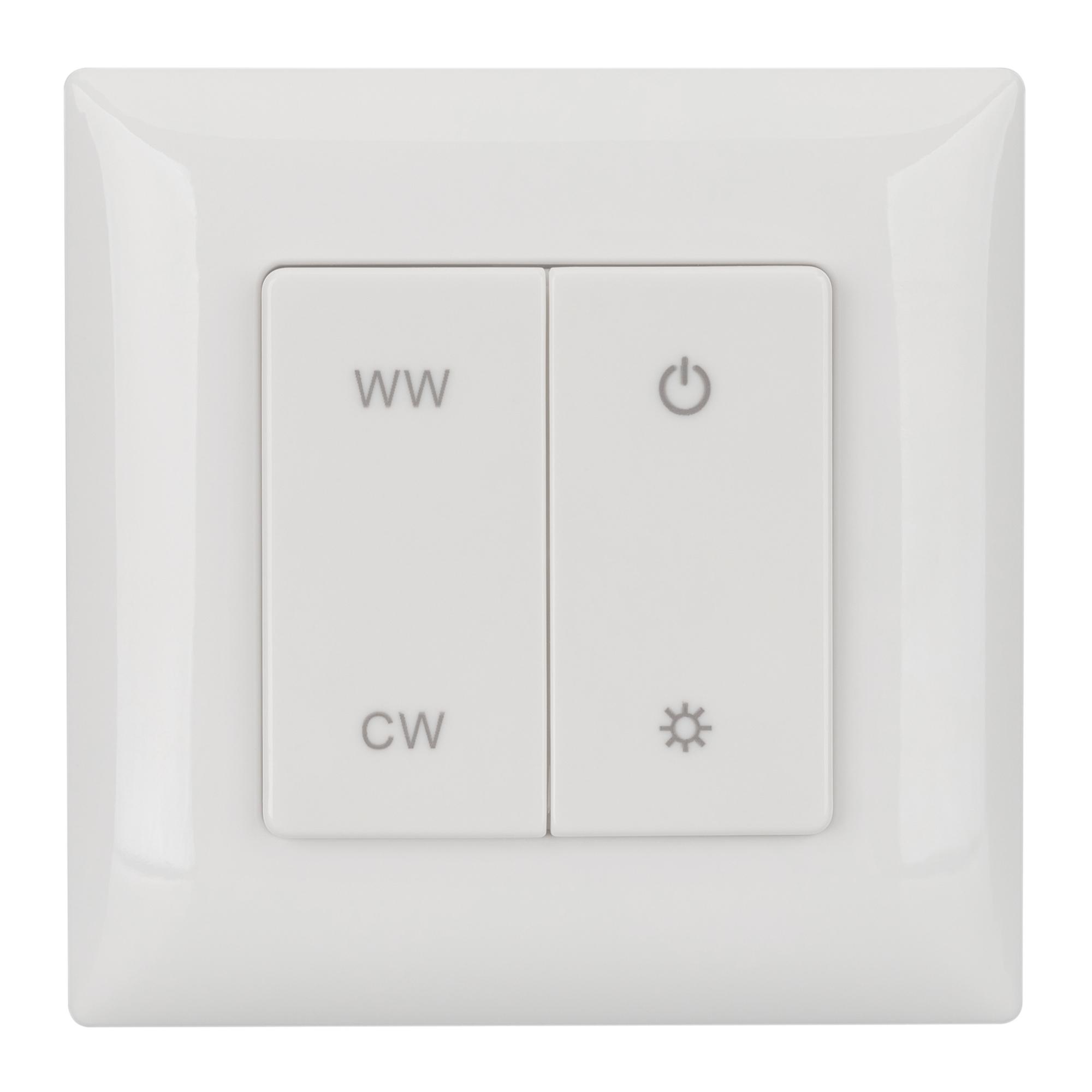 Накладная кнопочная панель 2.4 ГГц, цвет белый. Материал - пластик. Для управления мультибелыми (MIX) источниками света (ШИМ), 1 зона управления. Питание/рабочее напряжение 3VDC от батарейки CR2032. Габариты 86х86х14 мм. Совместима с контроллерами SMART.
