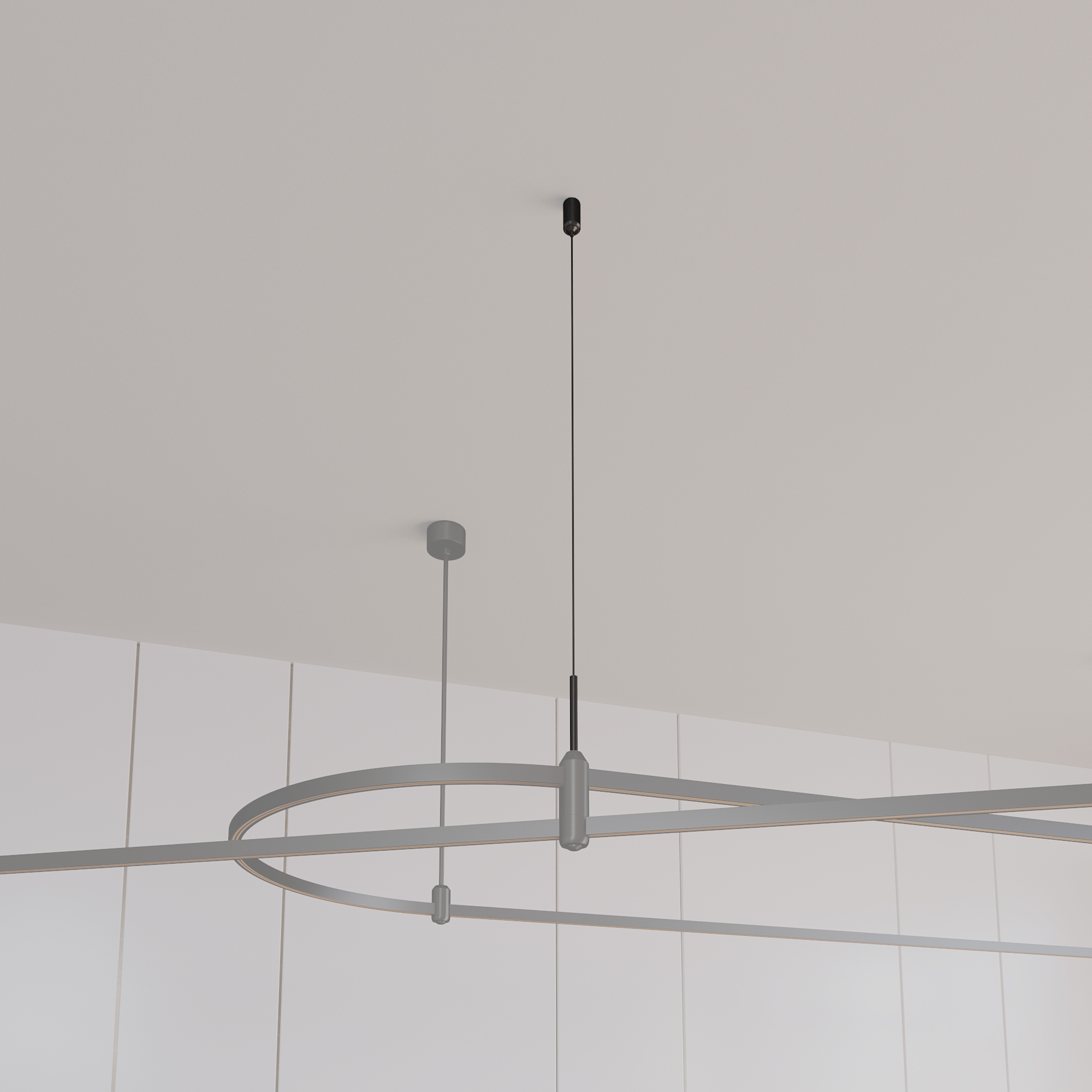 Подвес гибкий с регулируемым тросом для подвесного монтажа треков системы APRIORI. Тип крепления E. Не проводит электричество. Размер: Ø20 х 1500 х Ø10 мм. Материал алюминий, цвет черный.