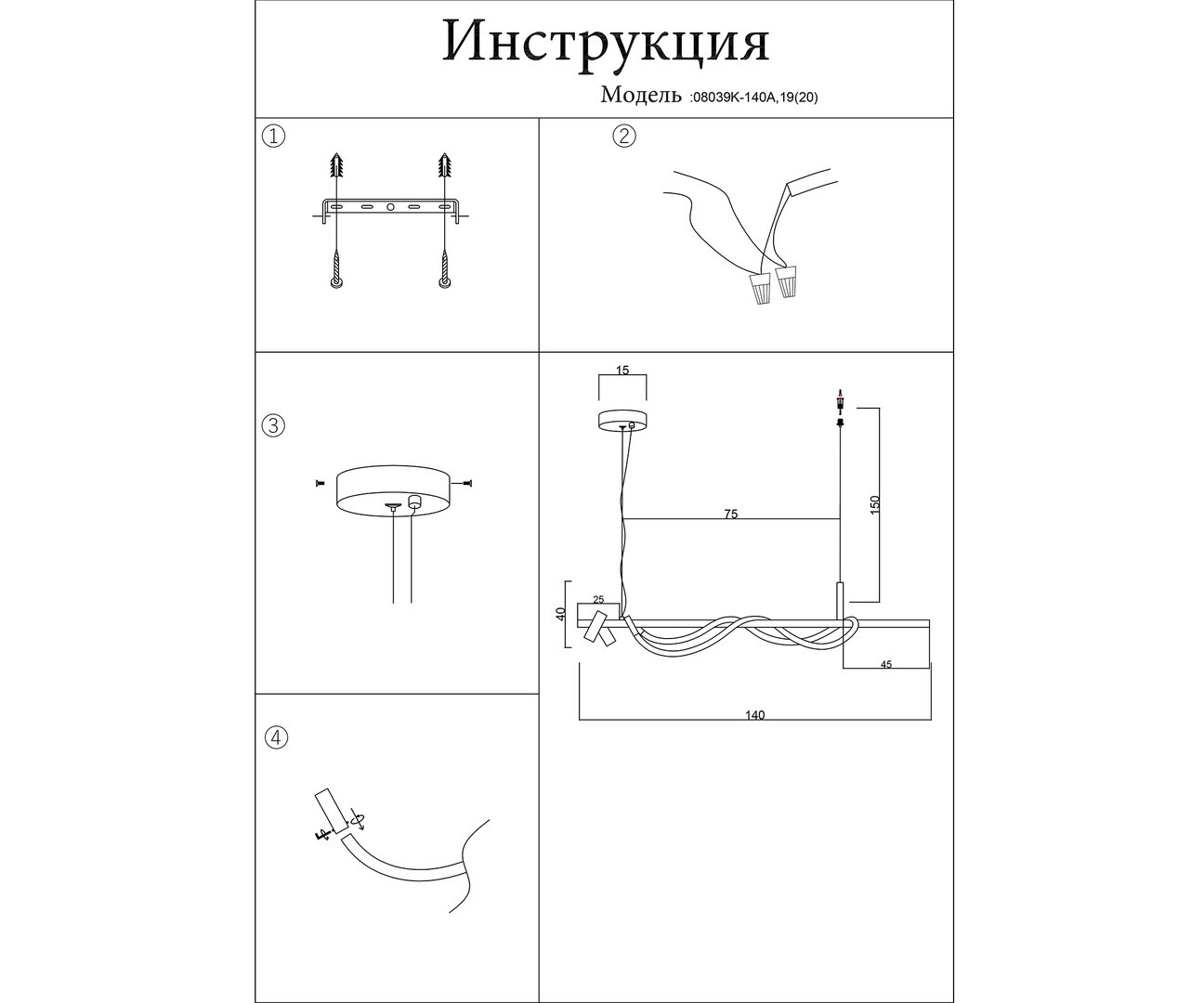 08039K-140A,19(20) Подвес Кайли черный/бронза L140 h40-150 Led 88W+Led 2*3W (3000K)