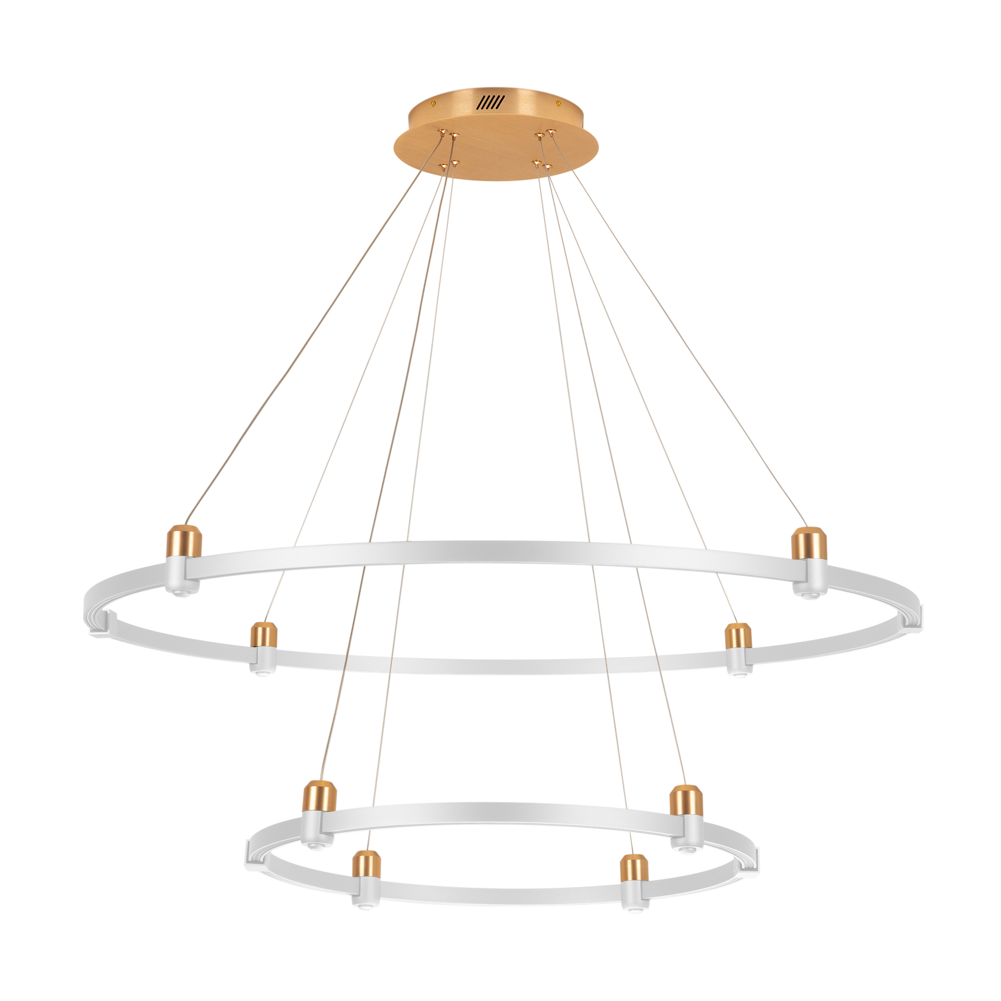 Подвес гибкий с прямым подводом питания и с регулируемыми тросами для подвесного монтажа радиусных треков системы APRIORI. Тип крепления А. Токопроводящий. Размер диаметр 260 мм, длина 5000 мм. Материал алюминий. Цвет: светлое золото.