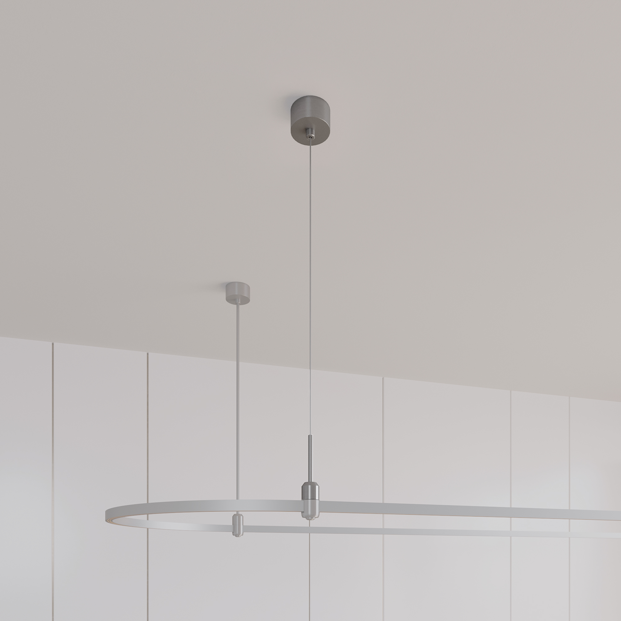 Подвес с прямым подводом питания для крепления к поверхности треков системы APRIORI. Тип крепления A. Напряжение питания DC48V. Диаметр чаши 80 мм, внутренний диаметр чаши 74 мм, внешняя высота чаши 38 мм, глубина чаши до монтажного отверстия 25 мм, общая высота подвеса 1500 мм. Материал алюминий, цвет титан. Выдерживает вес 20 кг.