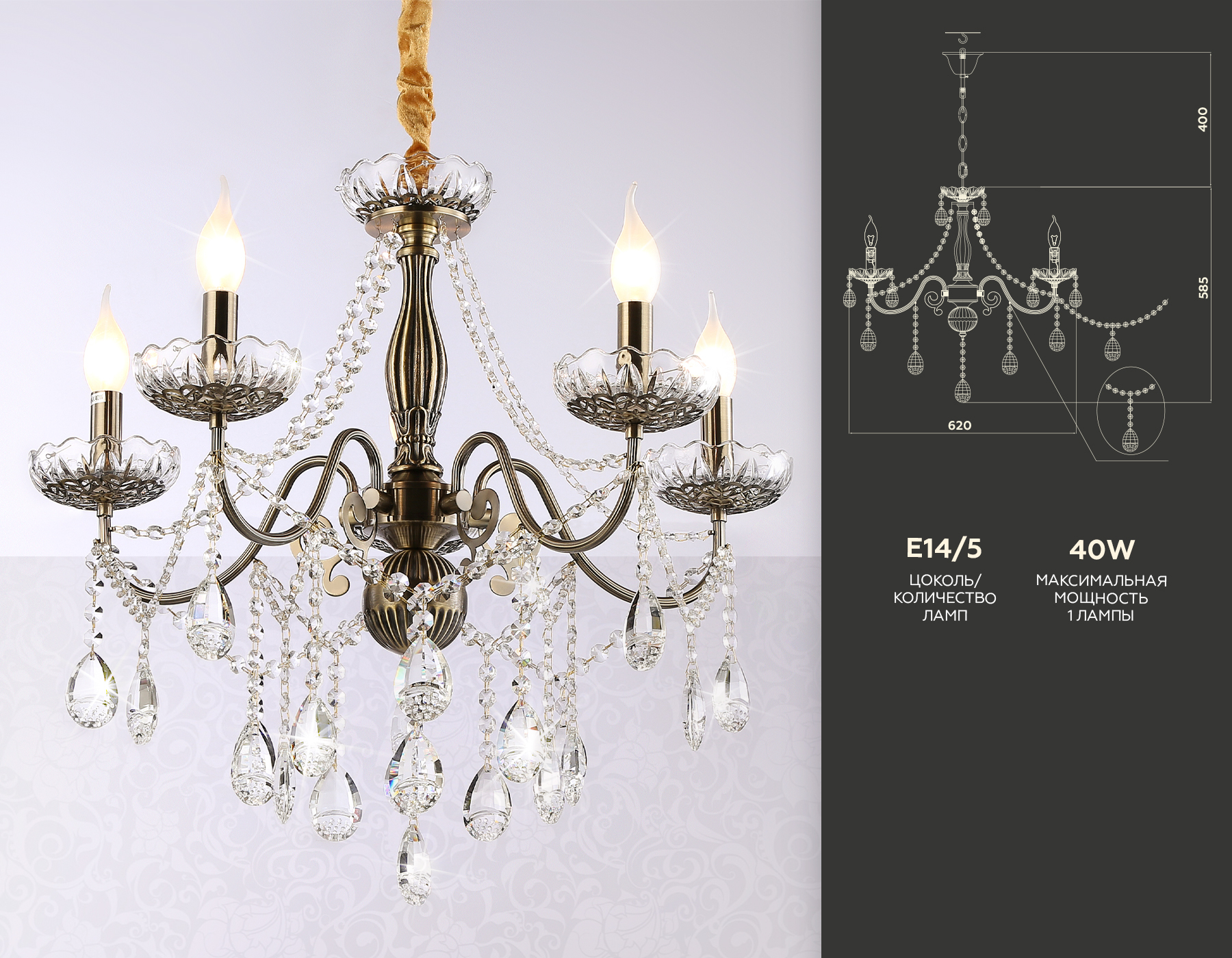 Подвесная классическая люстра из коллекции TRADITIONAL. Модель TR4949 выполнена из металлического корпуса бронзового цвета и декорирована превосходным прозрачным хрусталем. Для данной модели подойдут лампы с цоколем Е14. Люстра будет прекрасным дополнением в любом помещении.