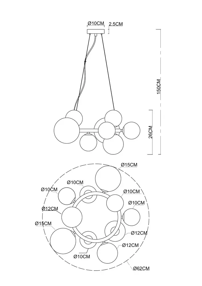 Подвесная люстра Arte Lamp GEMINI A2243SP-10BK, 10хG9