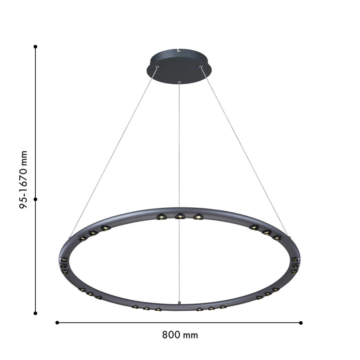 Подвесная люстра, каркас в темно-сером перламутровом оттенке металла, гнездовое размещение светодиодов, регулируемая высота, LED-модуль OSRAM SMD3030