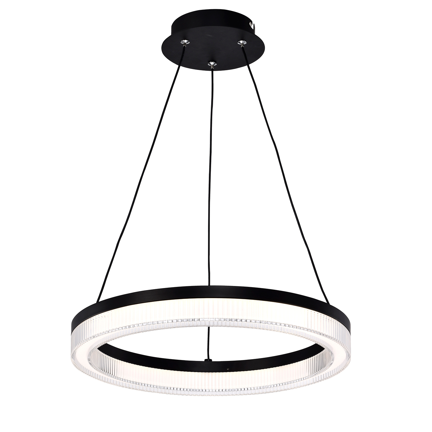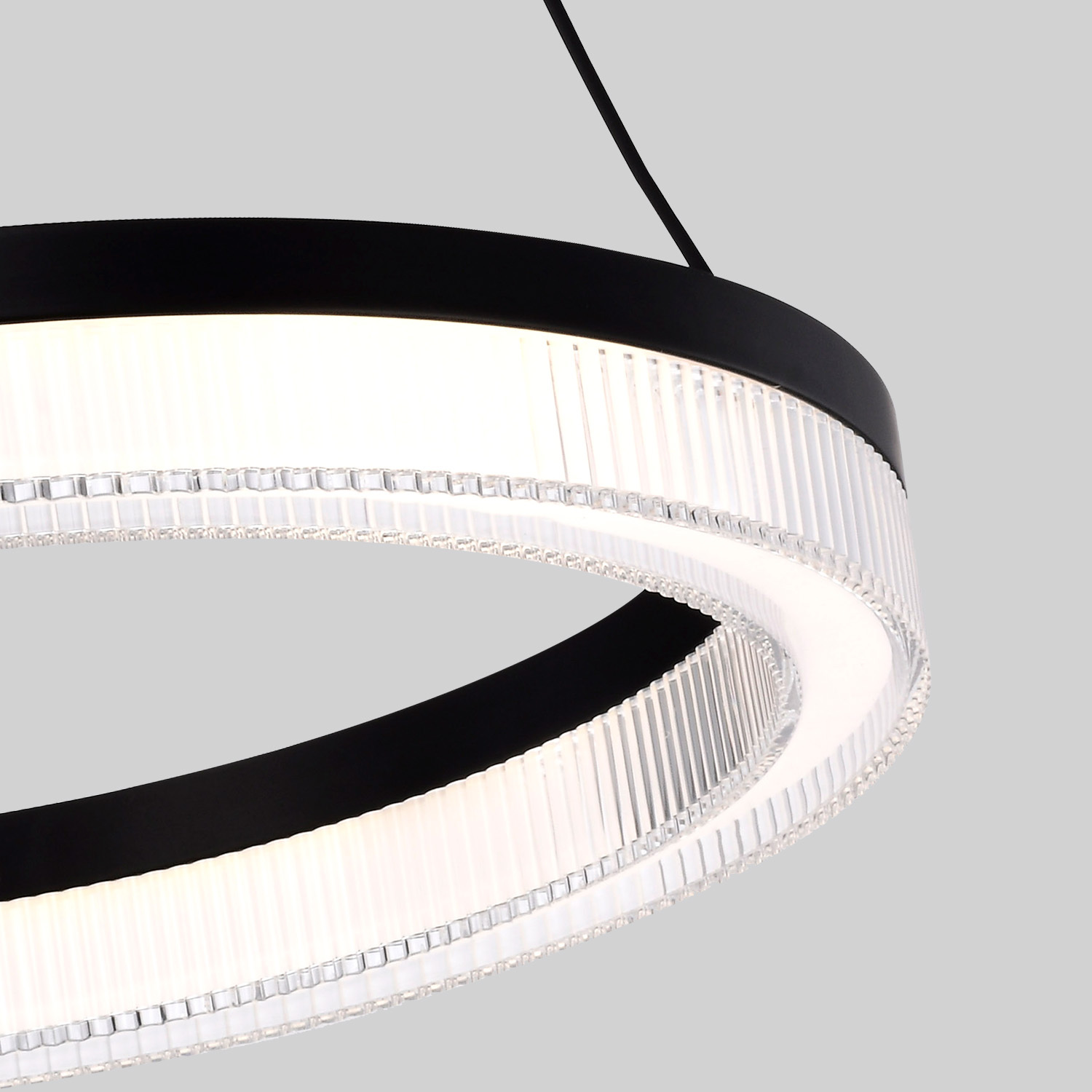 Подвесная люстра с черным каркасом, декоративный акриловый плафон со сложным многослойным оптическим узором, регулируемая высота