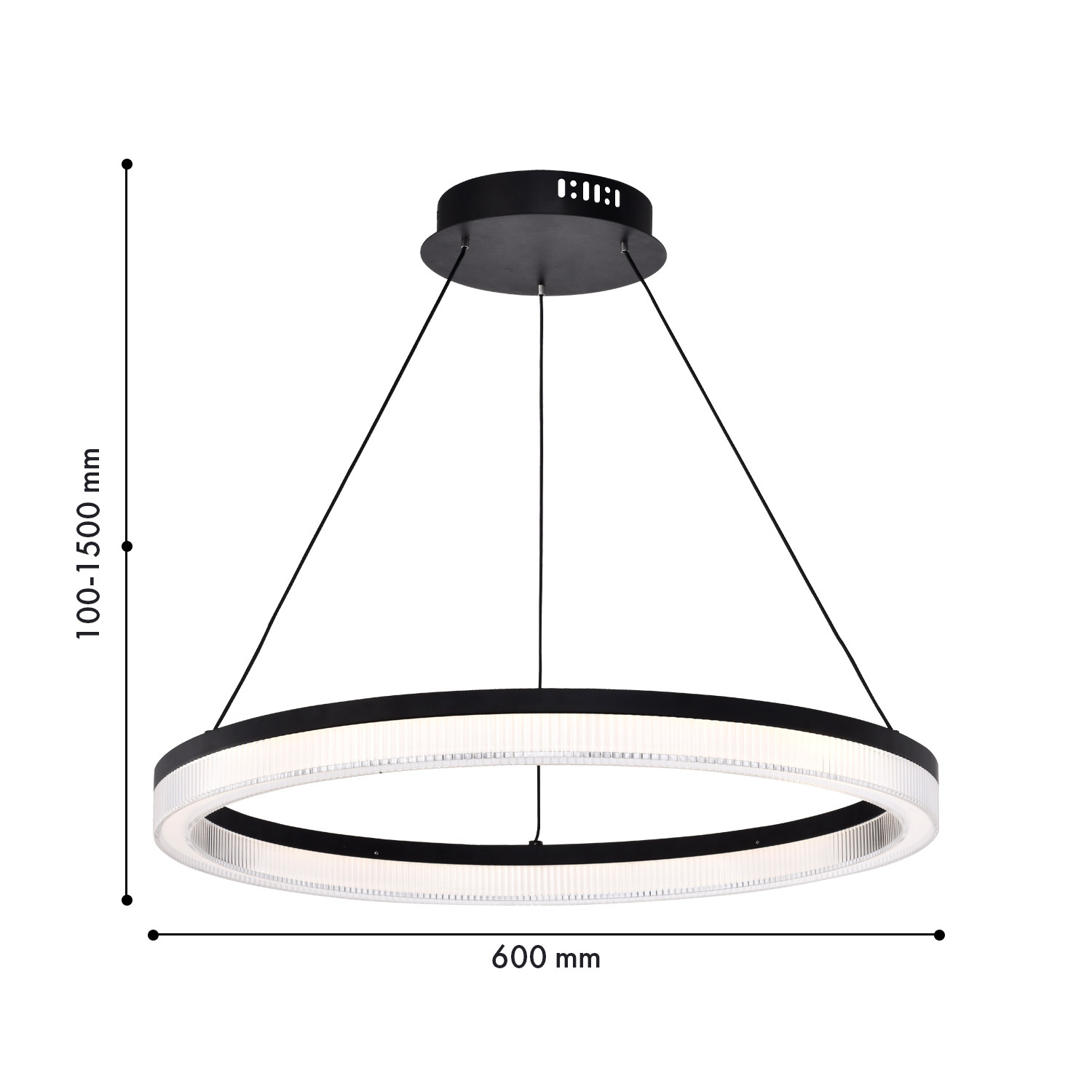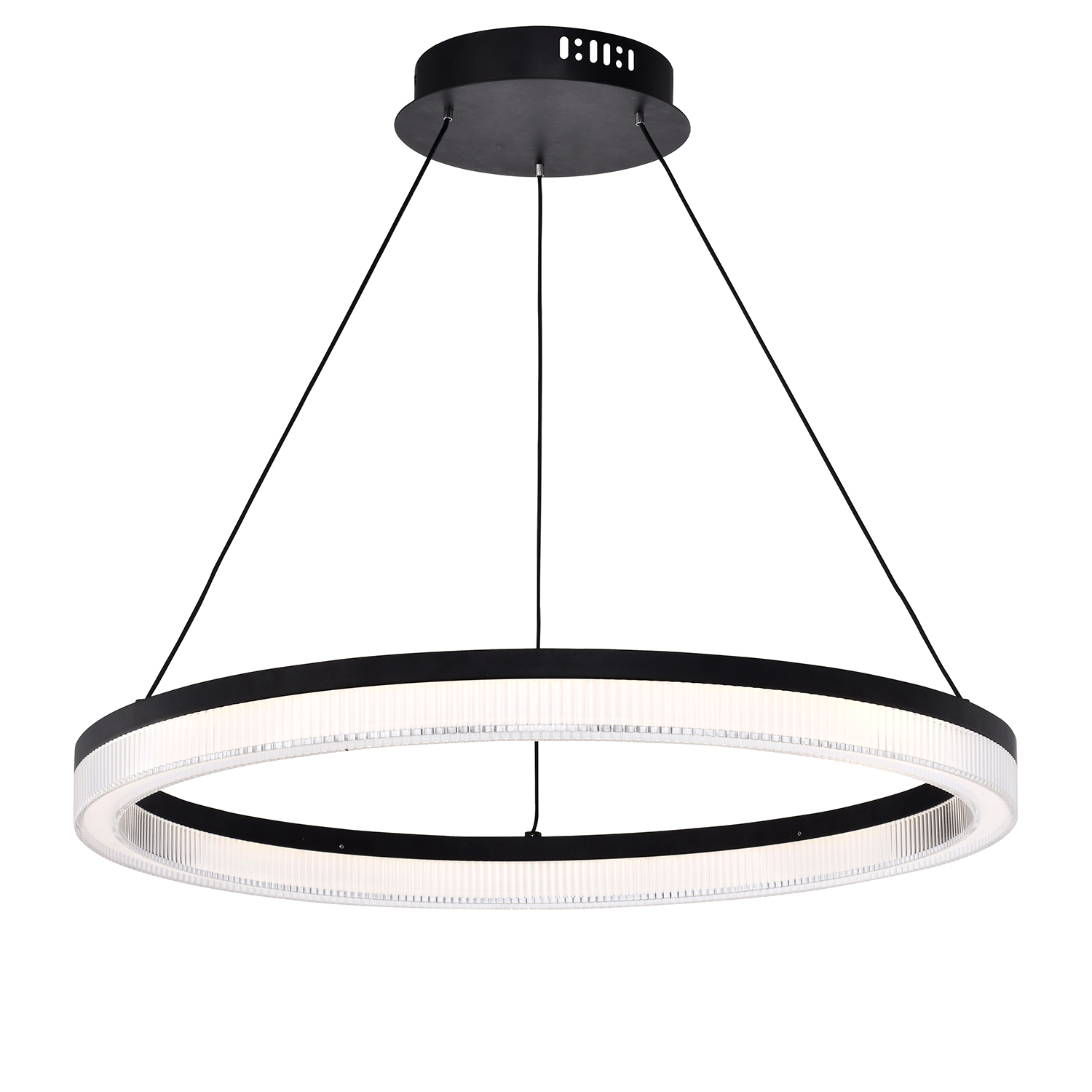 Подвесная люстра с черным каркасом, декоративный акриловый плафон со сложным многослойным оптическим узором, регулируемая высота
