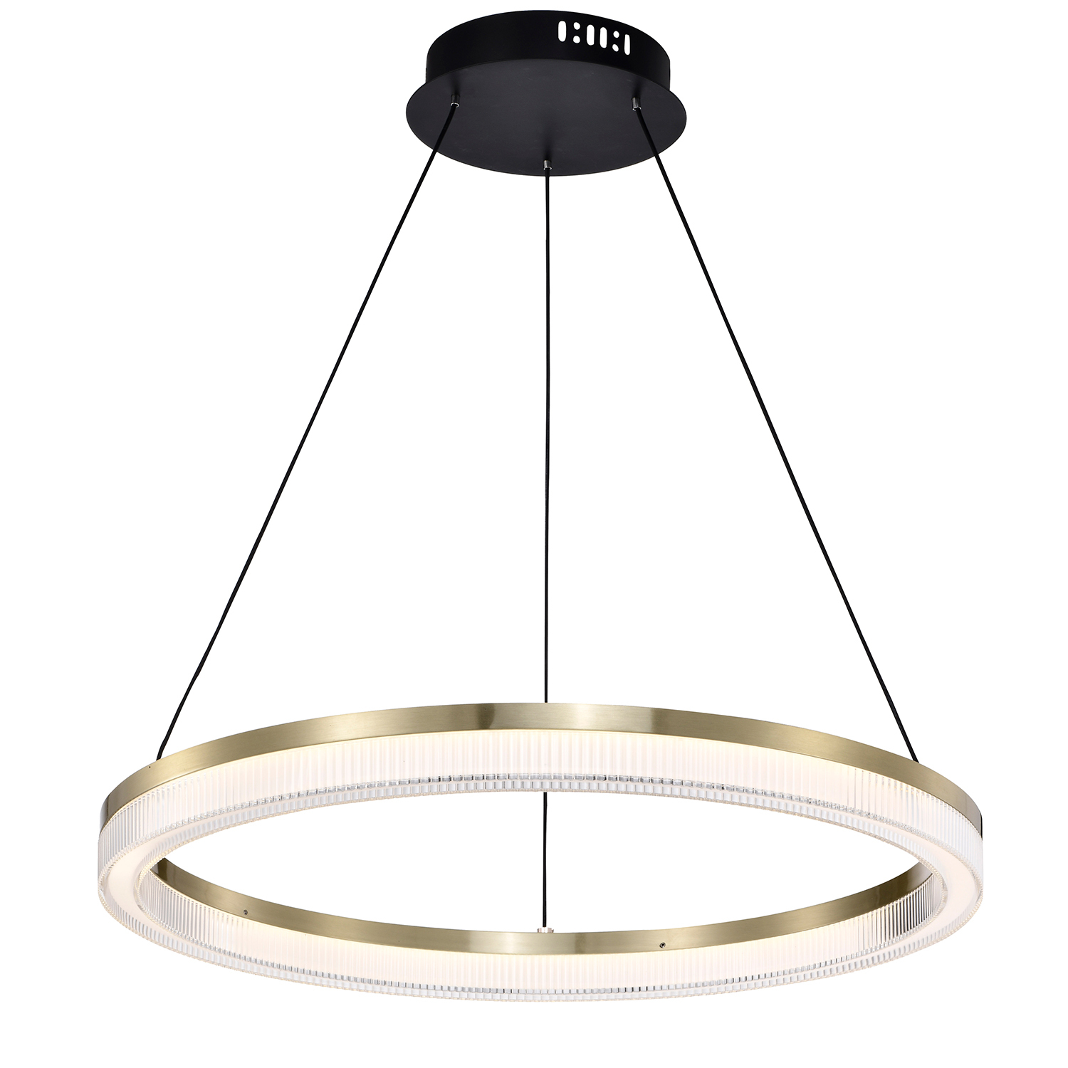 Подвесная люстра с каркасом в цвете гальваническое золото, декоративный акриловый плафон со сложным многослойным оптическим узором, регулируемая высота