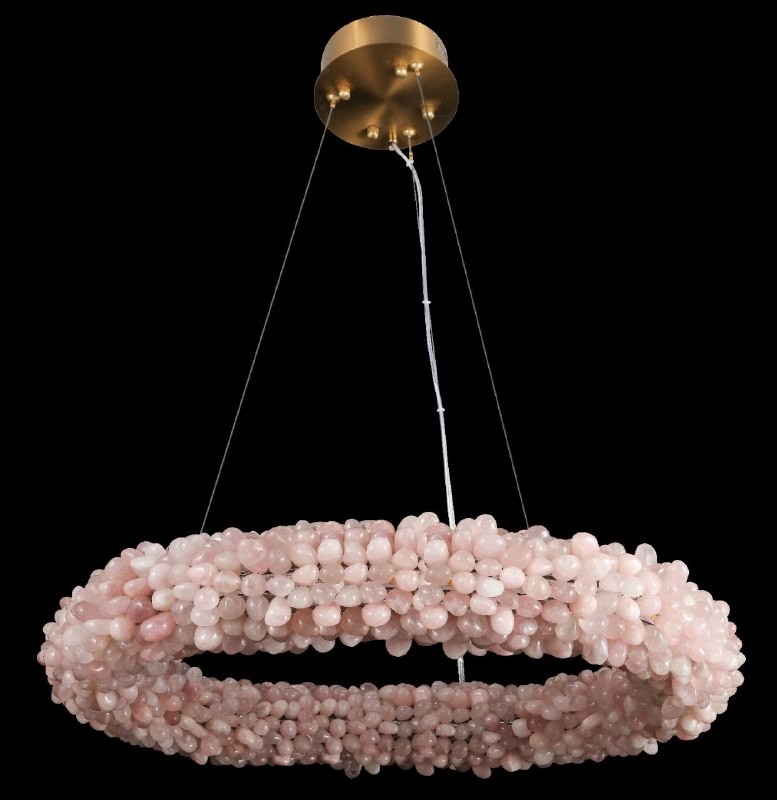 Вечная красота безупречности. Название коллекции ETERNITY отражает особенности ее дизайна. Эти люстры – воплощение смелых фантазий, гармонии форм и высокого качества. Частички натурального розового кварца ловят свет, преломляя его в тонкой игре бликов и создавая волшебную атмосферу. Кольцевая форма люстр символизирует вечность, а благородные оттенки натурального камня добавляют утончённости и шарма. Металлические элементы с матовой отделкой подчёркивают изысканность и современный стиль. Идеальный выбор для тех, кто ценит роскошь природы и стремится придать своему дому нотку элегантности и тепла.
