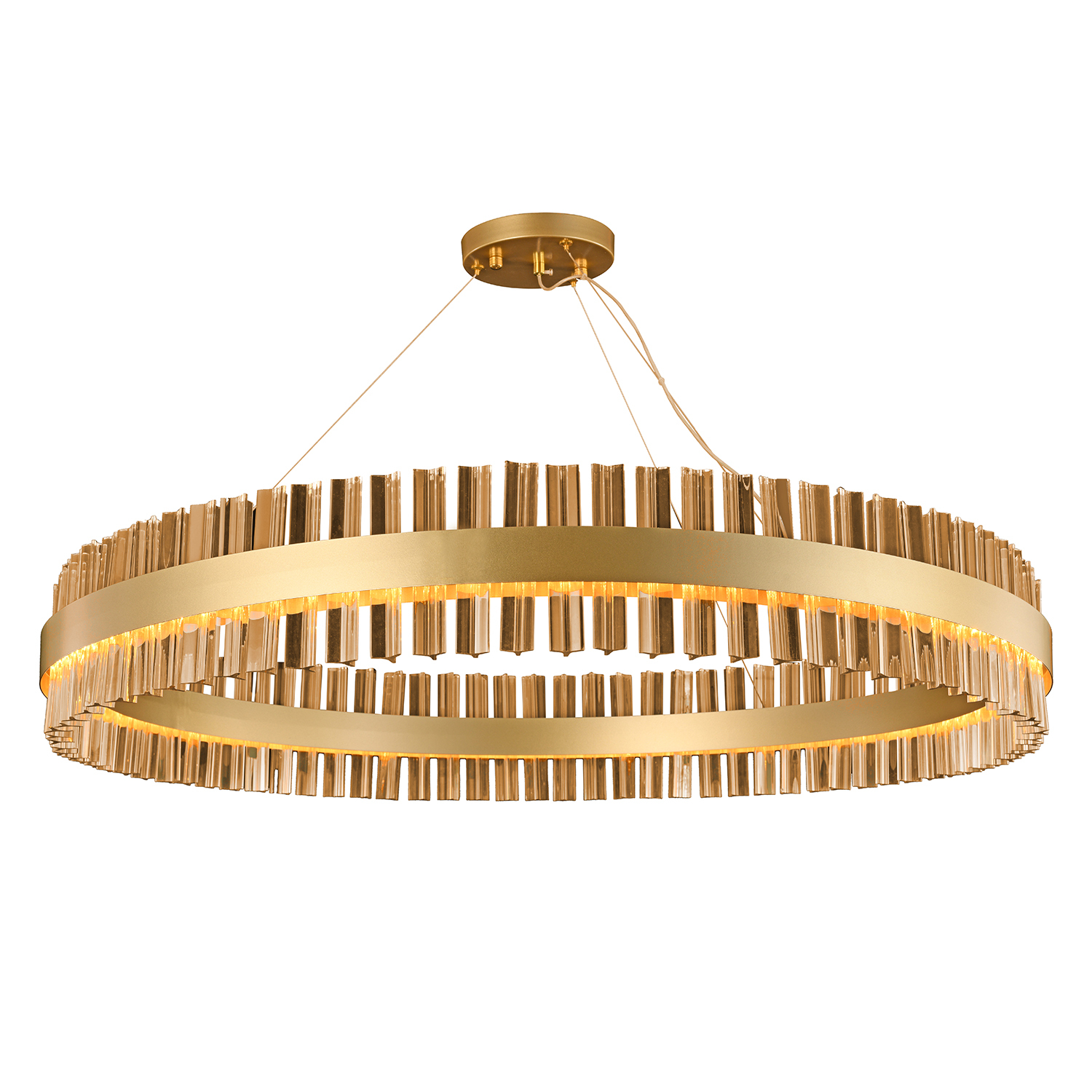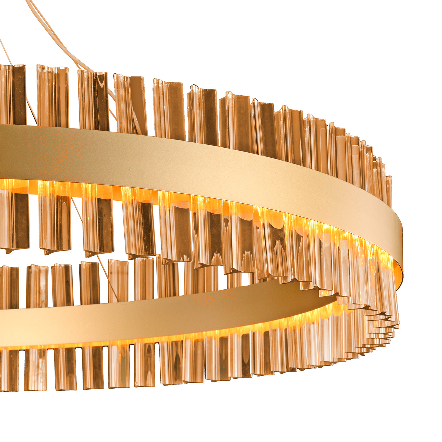 Подвесная кольцевая люстра диаметром 100 см, каркас в золотом цвете, янтарный хрусталь, регулируемая высота, встроенная лента LED