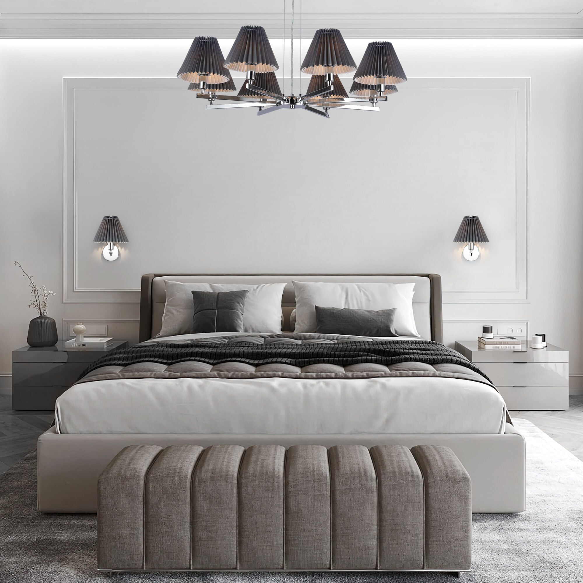Подвесная люстра с декоративными абажурами Eurosvet 60136/8 хром/графит обеспечит качественное основное освещение. Благодаря серым тканевым абажурам создается мягкое рассеянное свечение.
