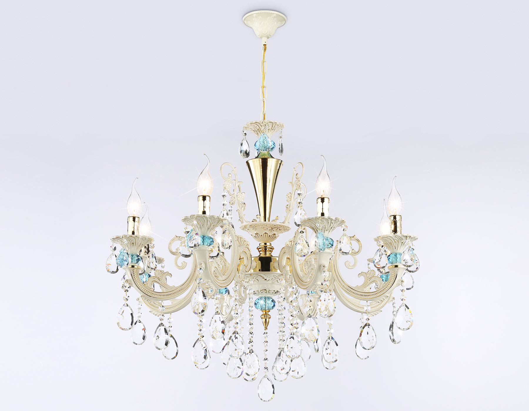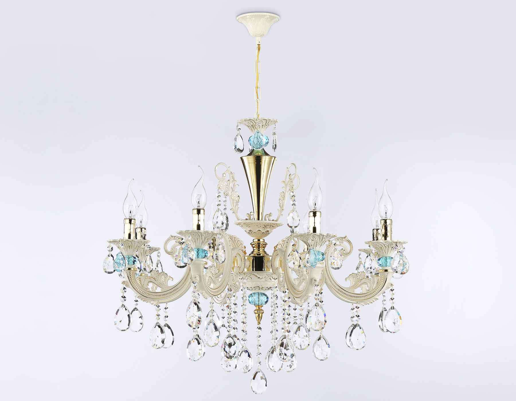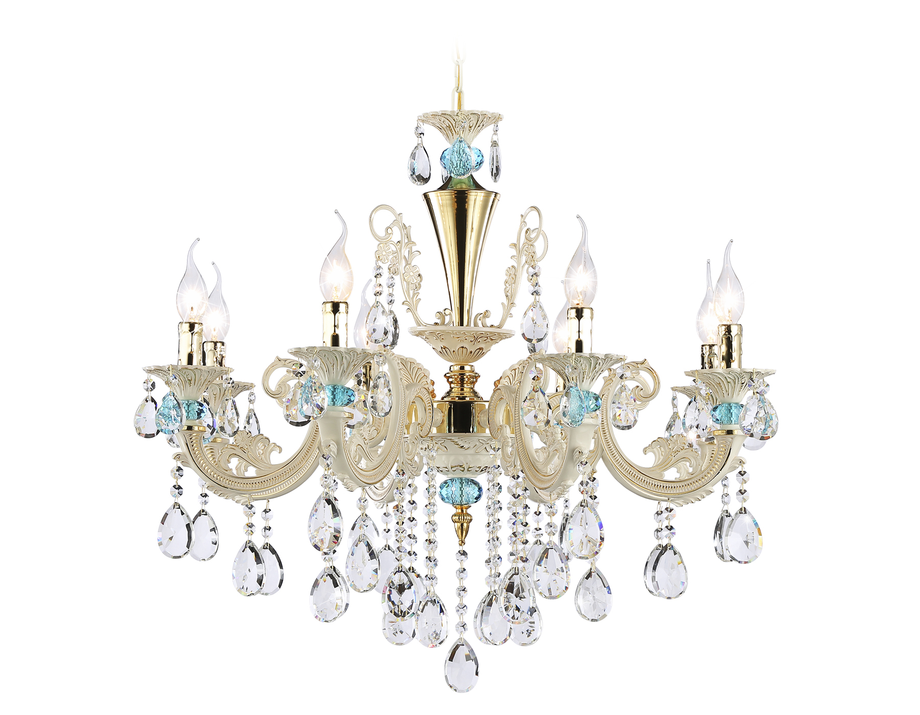 Подвесная люстра из коллекции TRADITIONAL. Модель TR4926 представлена в классическом стиле. Люстра выполнена из прозрачного хрусталя и металлического каркаса белого и золотого цвета. Для данной модели подойдут лампы с цоколем E14. Люстра будет прекрасным дополнением в любом помещении.