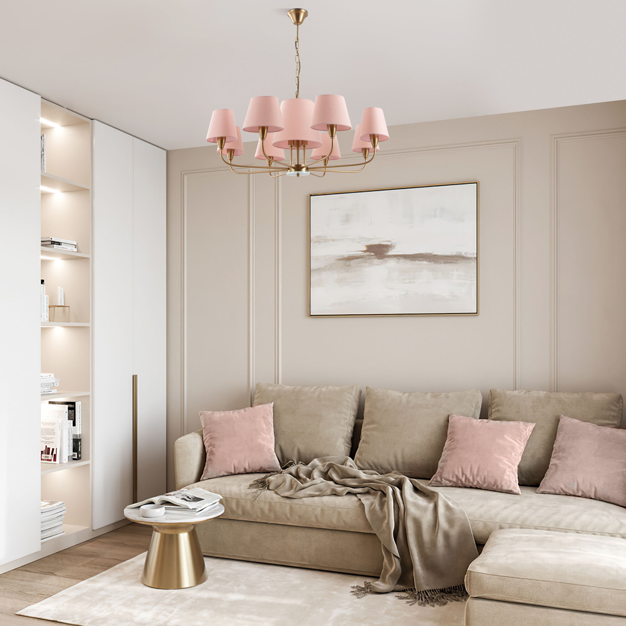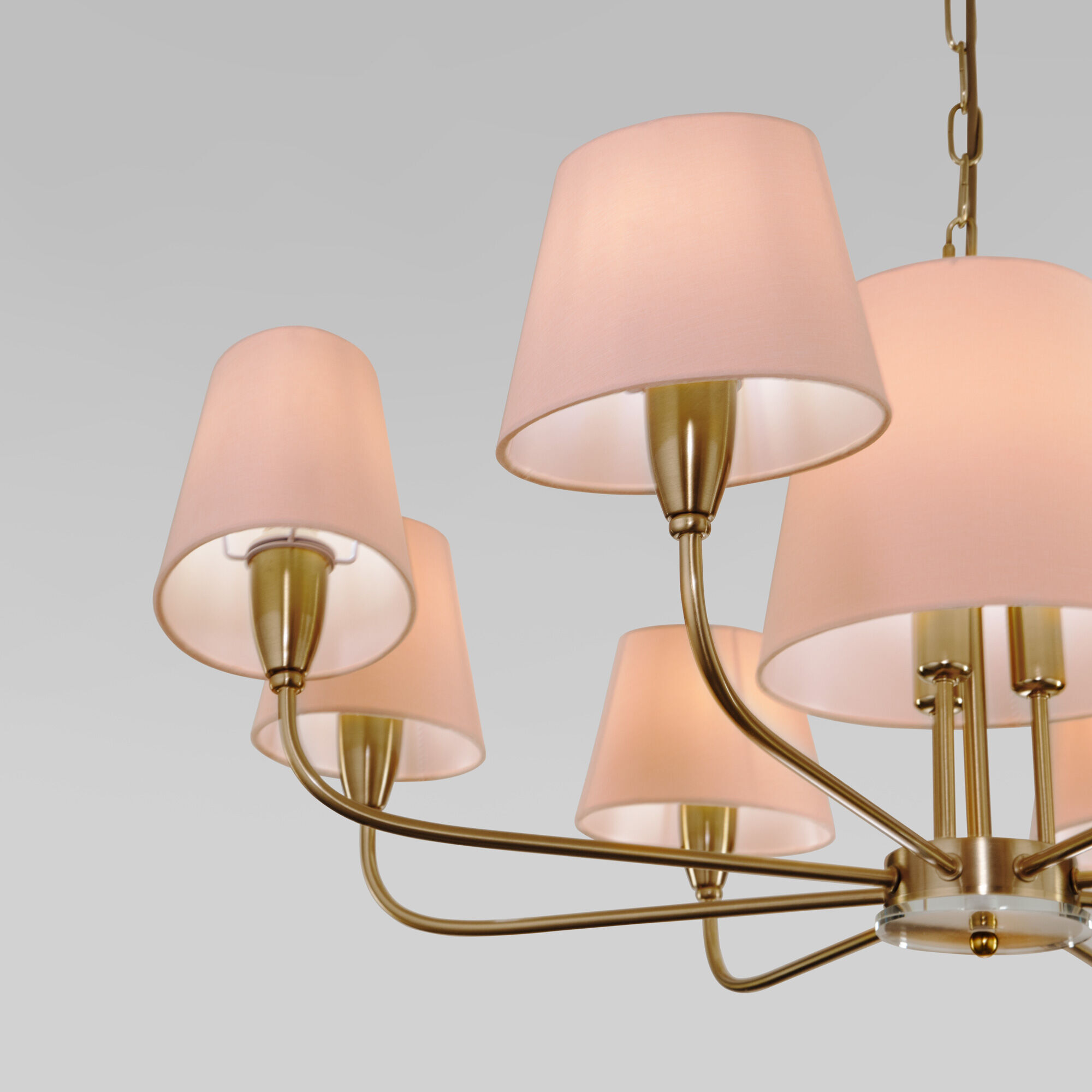 Люстра украсит помещение и создаст полноценное освещение на площади 20 м². В люстре рекомендуется использовать сменные лампы с цоколем Е14 с максимальной мощностью 40Вт. Элегантная коллекция идеально впишется в современные интерьеры. Светильник создает лаконичный, но в то же время изящный образ. В производстве люстры использовали высококачественный металл с надежным защитным покрытием и ткань.