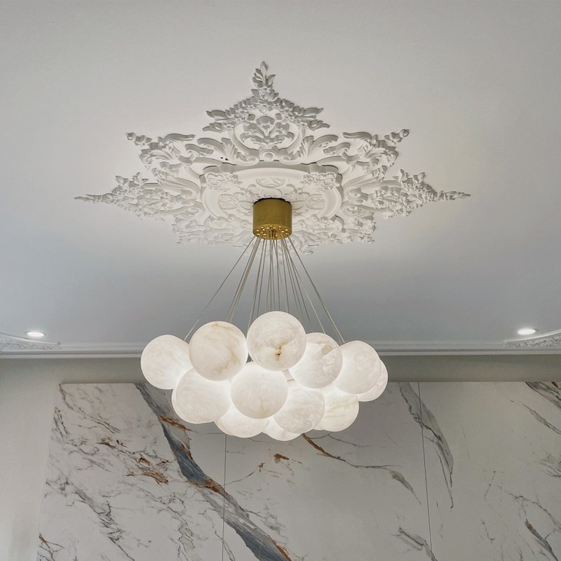 Единство – в красоте. Название коллекции Unity отражает ее дизайнерскую задумку. Светильники состоят из множества плафонов-сфер. Вместе они образуют светящуюся мозаику с четкими контурами. Плафоны выполнены из натурального камня - испанского алебастра. Корпус – из металла с гальваническим покрытием цвета латуни. Коллекция представлена люстрами в двух разных размерах.