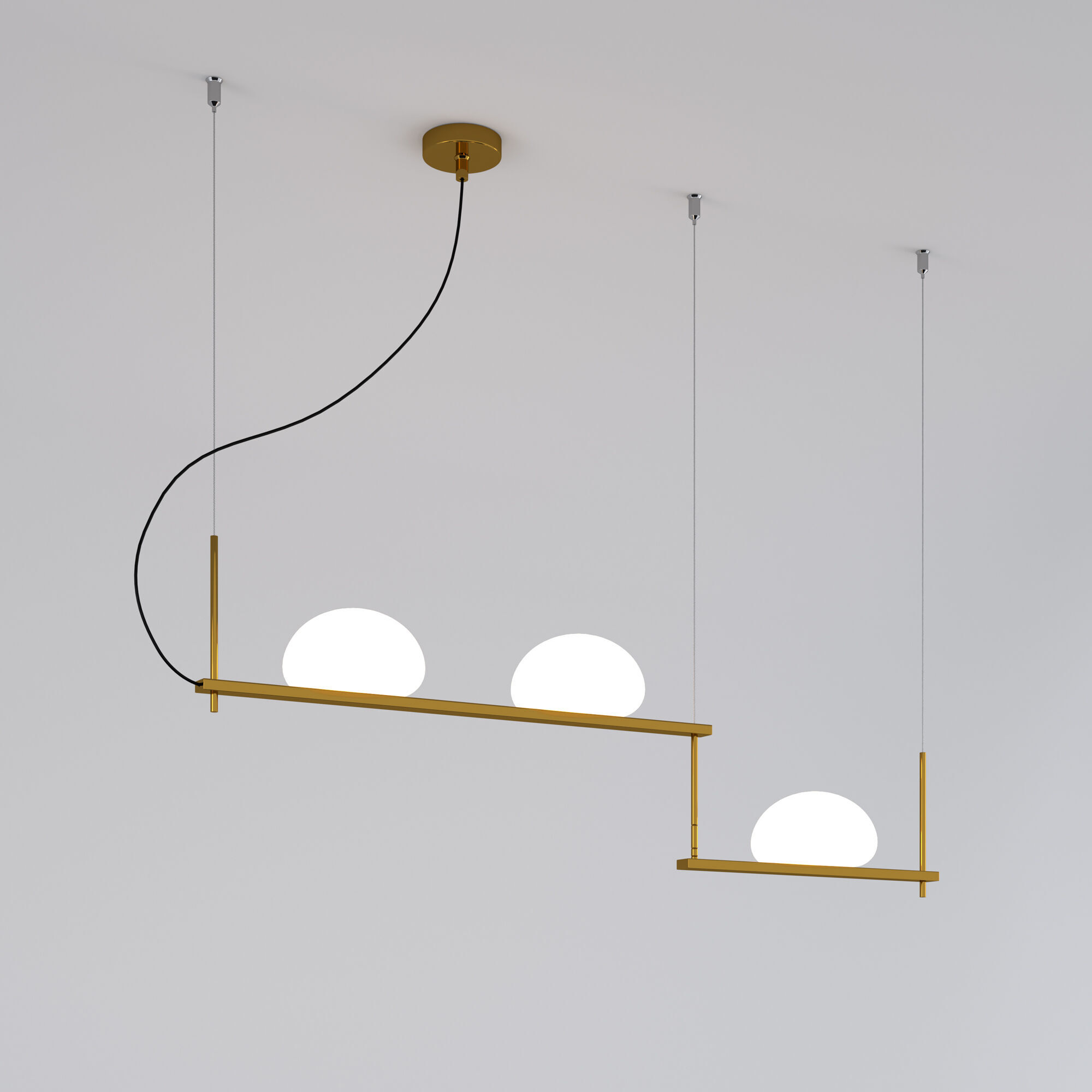 Светильник со стеклянными плафонами оснащен системой регулировки высоты подвеса, позволяющей размещать изделие на разных уровнях, уменьшая или увеличивая угол рассеивания светового потока. Подвесной светильник просто устанавливается на натяжных потолках при помощи монтажной планки.