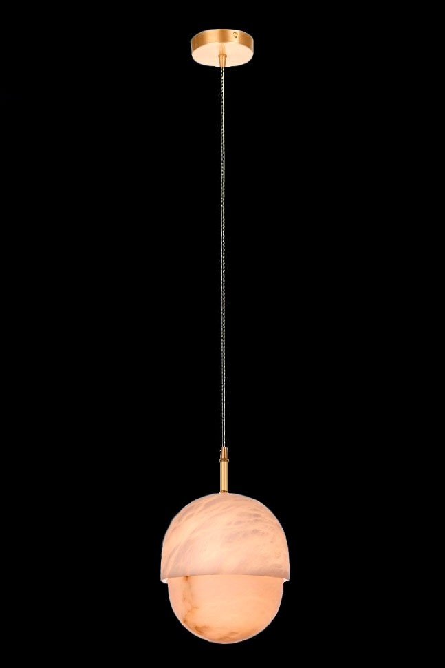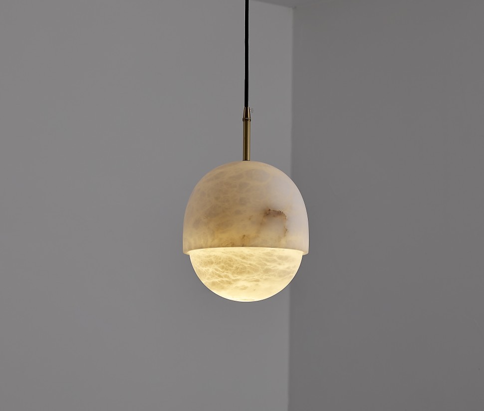 Плафоны выполнены из испанского алебастра. Камень отличается высокой прочностью и способностью красиво пропускать свет. Корпус светильников – из латуни.