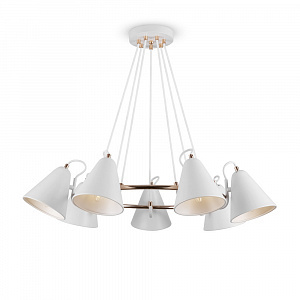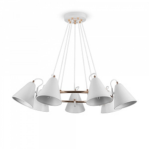 Серия Falke выглядит легкой и воздушной благодаря освежающей цветовой гамме и сдержанному дизайну в духе минимализма. Белый тон арматуры и плафонов разбавлен контрастными золотыми вставками. Все элементы выполнены из металла, что обеспечивает надежность и долговечность эксплуатации. Расположенные на круглой раме, плафоны дают равномерное освещение, а их коническая форма направляет световой поток, делая его более интенсивным и ярким. Широкая линейка решает различные задачи и позволяет создавать разнообразные световые сценарии: подвесные люстры на 3, 5 и 7 плафонов, одиночный подвес, настольная лампа и бра помогут организовать комплексное освещение. Используйте светильники в интерьерах, оформленных в стиле минимализм, лофт, сканди.