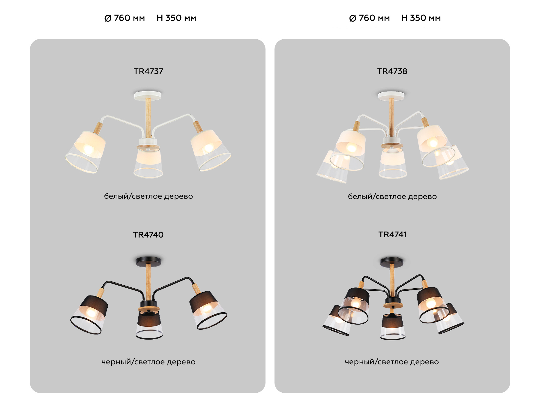 Подвесной светильник из коллекции TRADITIONAL. Модель TR4738 представлена в современном стиле неоклассика. Светильник выполнен из белого металлического каркаса и пластиковых прозрачных плафонов с деревянным декором. Для данной модели подойдут лампы с цоколем Е27. Светильник будет прекрасным дополнением в любом помещении.