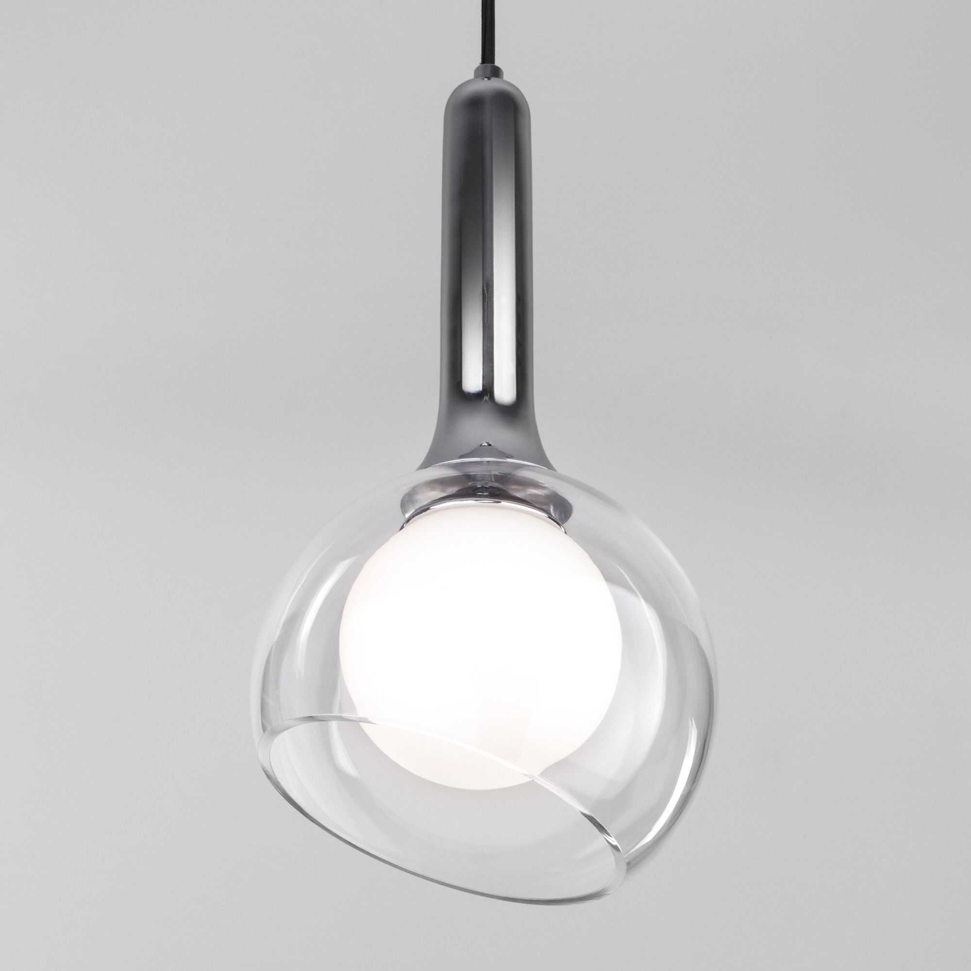Подвесной светильник со стеклянным плафоном 50188/1 в цвете хром предназначен для создания дополнительного освещения и акцентной подсветки в современных интерьерах. Светильник со сменной лампой G9, которая идет в комплекте, создаст качественное освещение на площади 3 кв.м. и подсветит рабочие зоны на кухне, в гостиной и других местах.