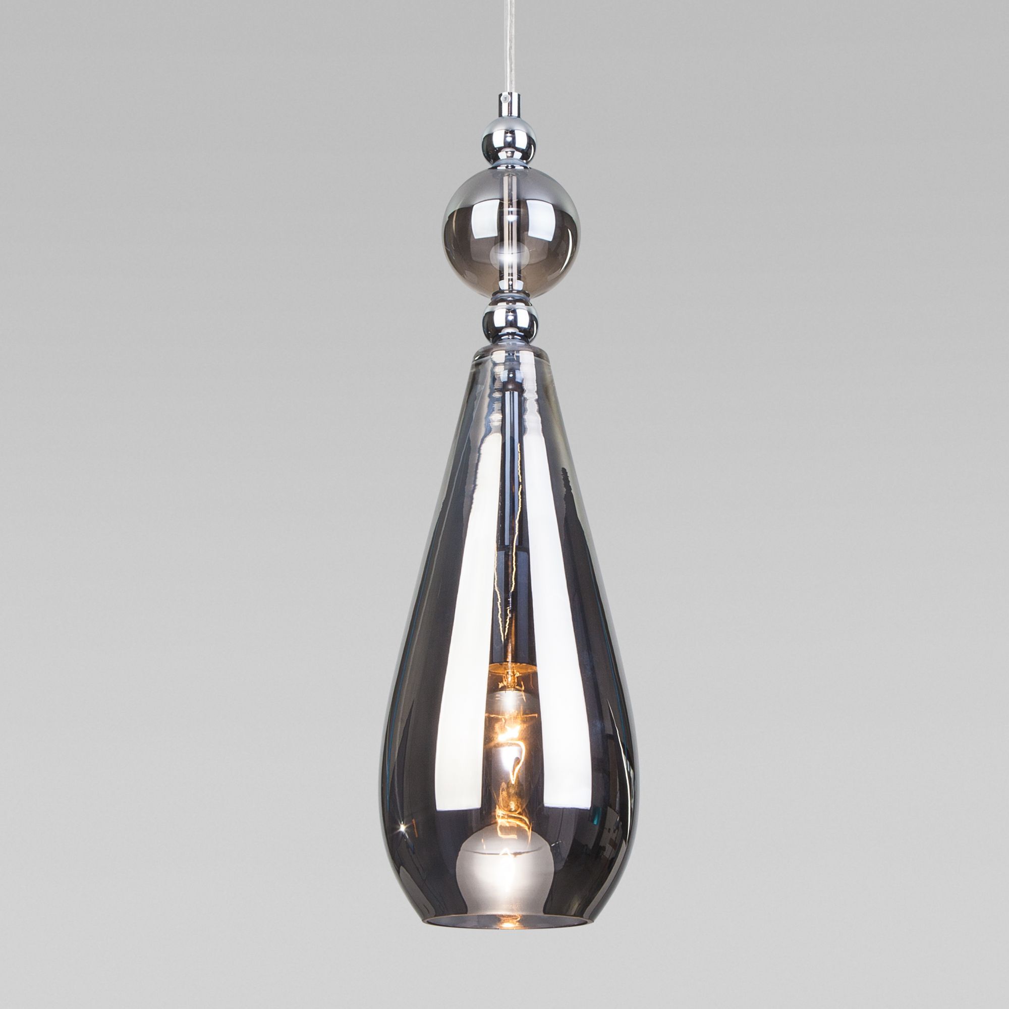 Подвесной светильник со стеклянным плафоном 50202/1 в цвете дымчатый предназначен для создания дополнительного освещения и акцентной подсветки в современных интерьерах. Светильник со сменной лампой E14 создаст качественное освещение на площади 3 кв.м. и подсветит рабочие зоны на кухне, в гостиной, в офисе и других местах.