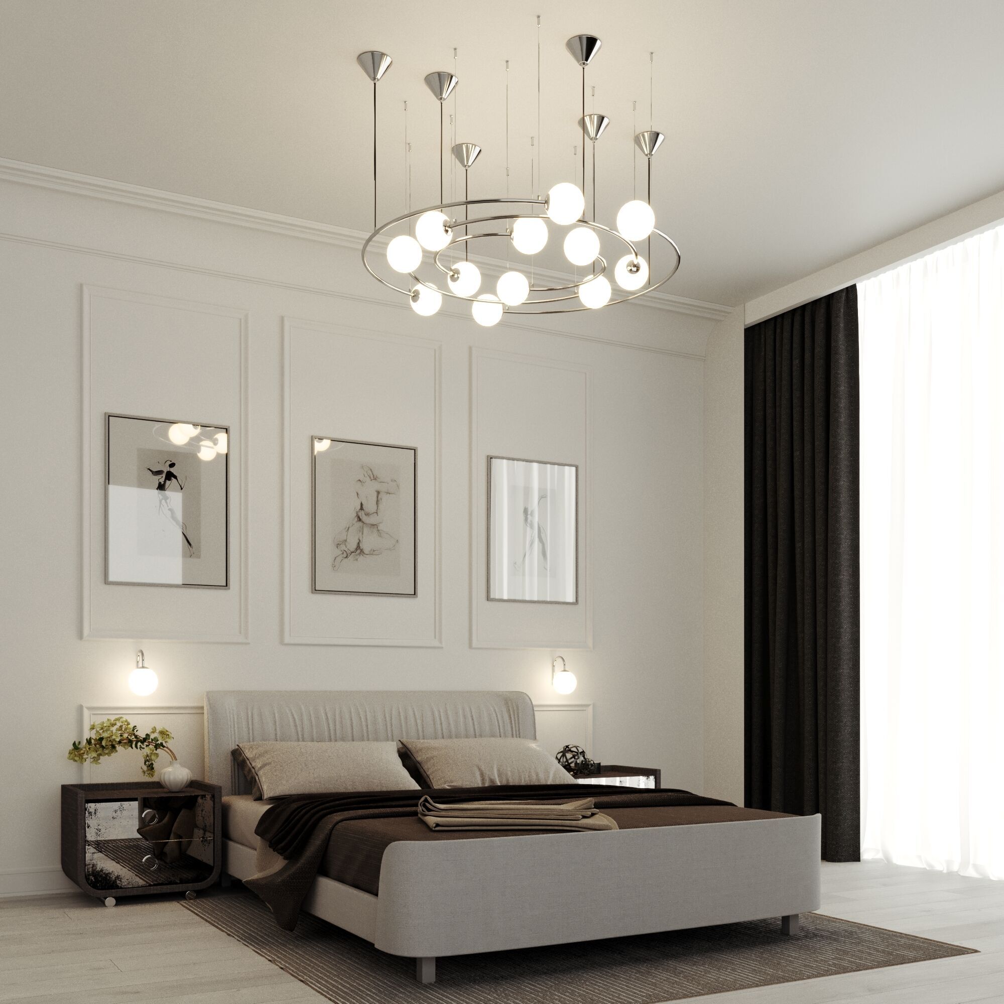 Подвесная люстра 360/12 хром предназначена для создания основного освещения в современных и классических интерьерах, подходит для различных типов помещений: гостиная; спальня и рассчитана на площадь освещения 9 м².