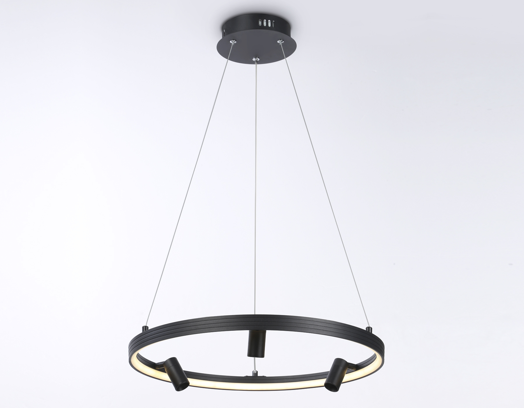 Подвесной светодиодный светильник с пультом и поворотным спотом, коллекция COMFORT. Модель FL5284 представлена в современном стиле техно. Светильник выполнен из металла в черном цвете. Эта модель оснащена встроенными светодиодами, благодаря чему вы забудете о замене дополнительных ламп. Так же с помощью инфракрасного пульта вы сможете регулировать цветовую температуру и яркость освещения. Данная модель подходит для натяжных потолков и будет прекрасным дополнением в любом помещении.