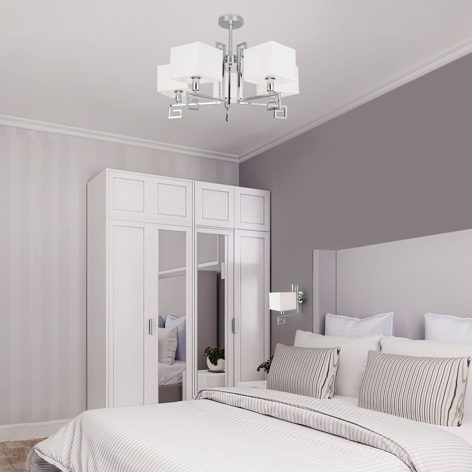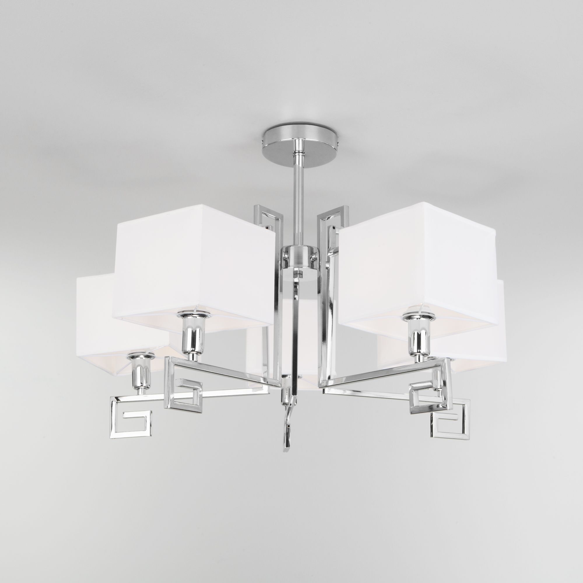 Подвесная люстра с 5 рожками белого цвета предназначена для создания основного освещения в современных и классических интерьерах, подходит для различных типов помещений: гостиная, спальня и рассчитана на площадь освещения 13 м².