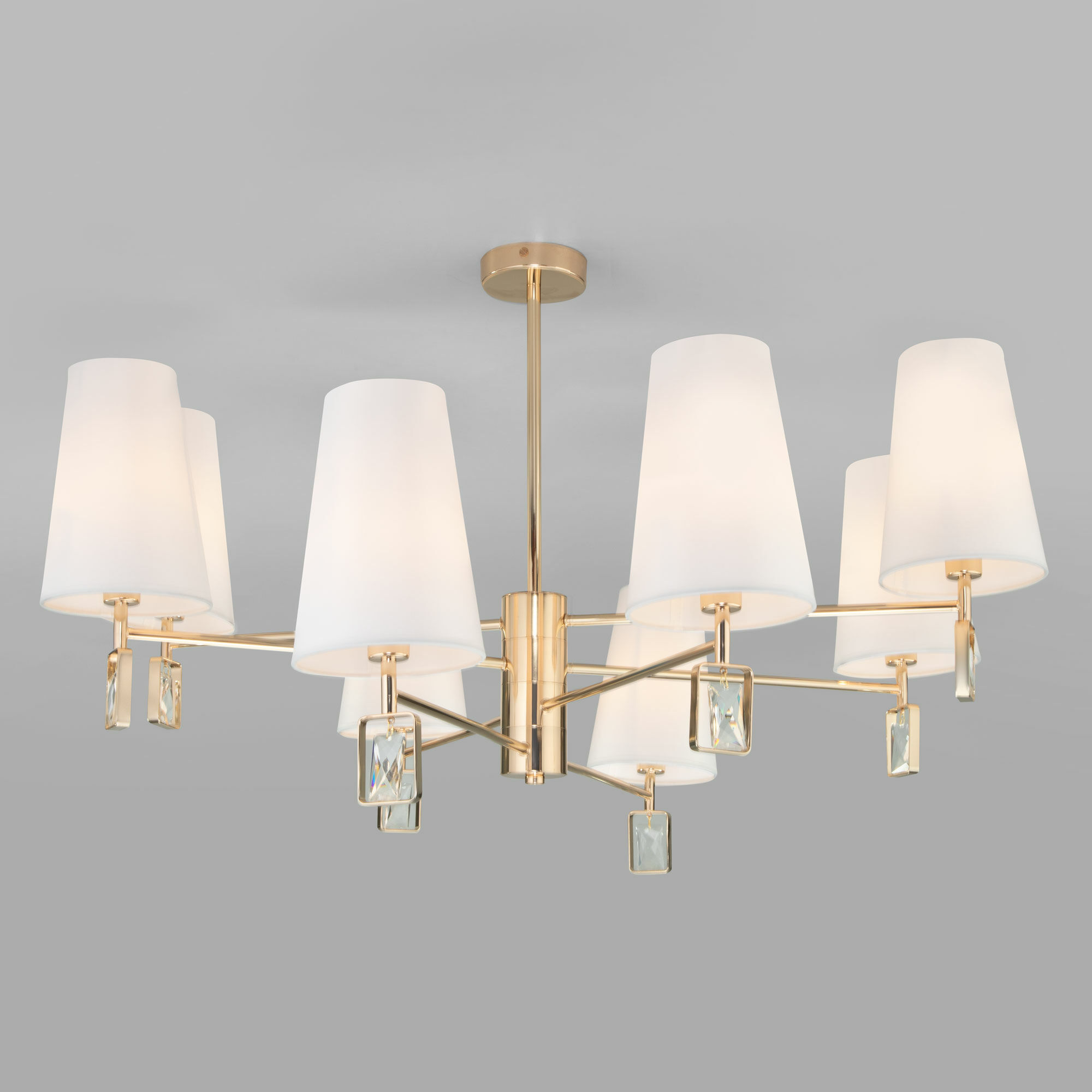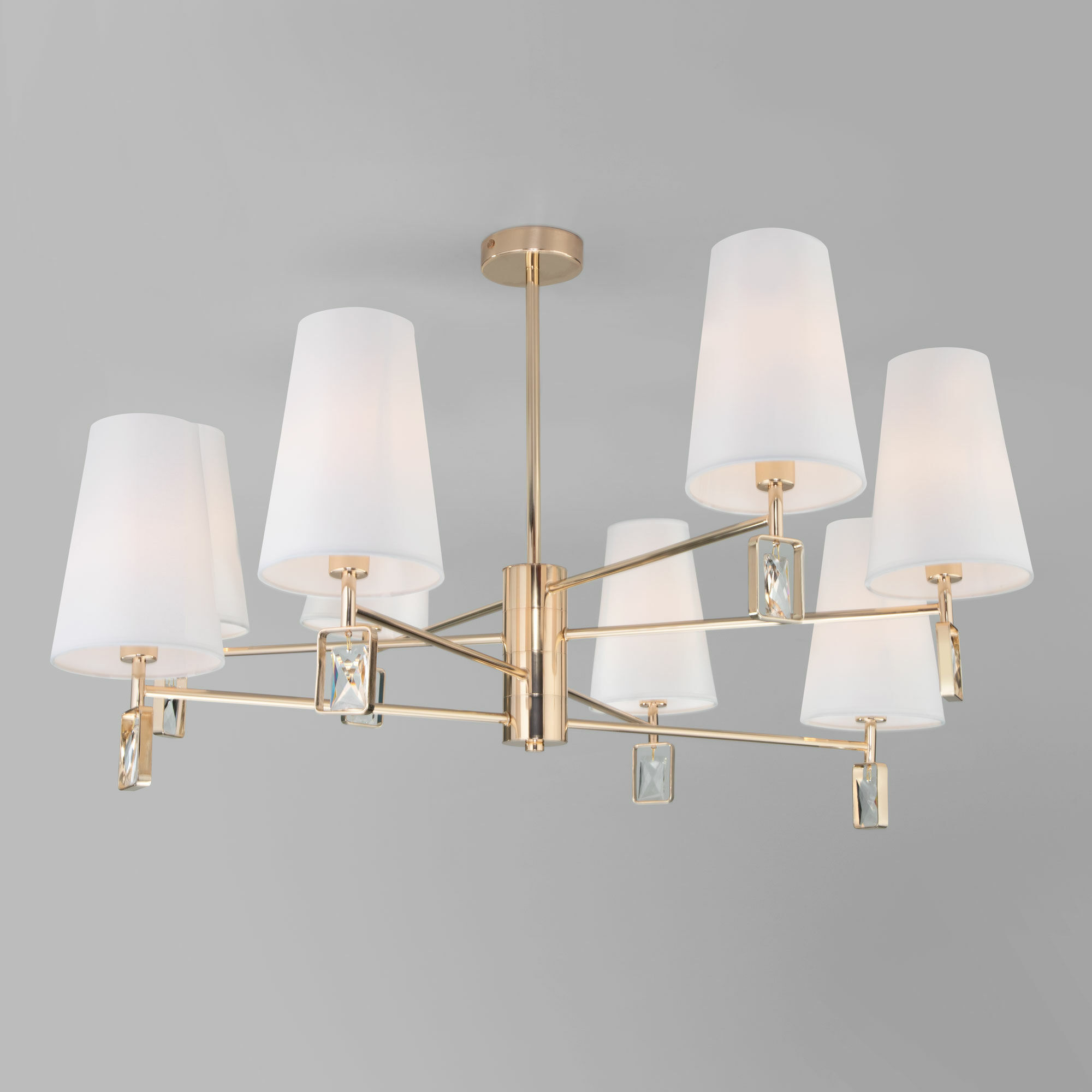В люстре рекомендуется использовать сменные лампы накаливания с цоколем Е14 с максимальной мощностью 40 Вт. В производстве люстры использовали высококачественный метал с надежным защитным покрытием и хрусталь с изящной огранкой.