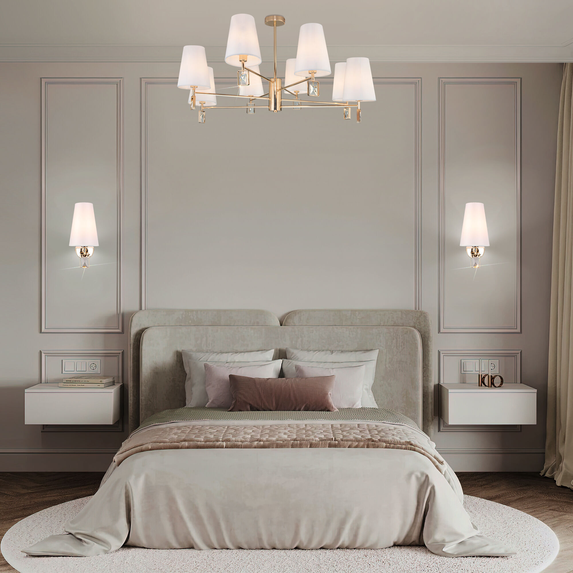 Создать качественное освещение вам поможет классическая потолочная люстра с тканевыми абажурами. Простые минималистичные формы и сдержанные тона станут идеальным дополнением для вашего интерьера. Люстра украсит потолок вашей спальни и создаст полноценное освещение на площадь 14 м².