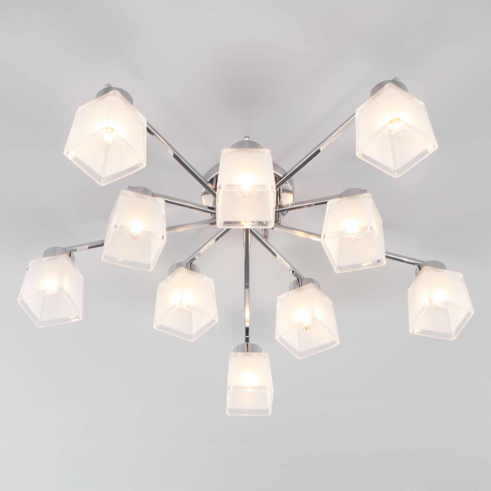 Создать качественное освещение вам поможет современная классическая десятирожковая потолочная люстра со стеклянными плафонами в белом цвете. Простые минималистичные формы и сдержанные тона станут прекрасным дополнением для вашего помещения.