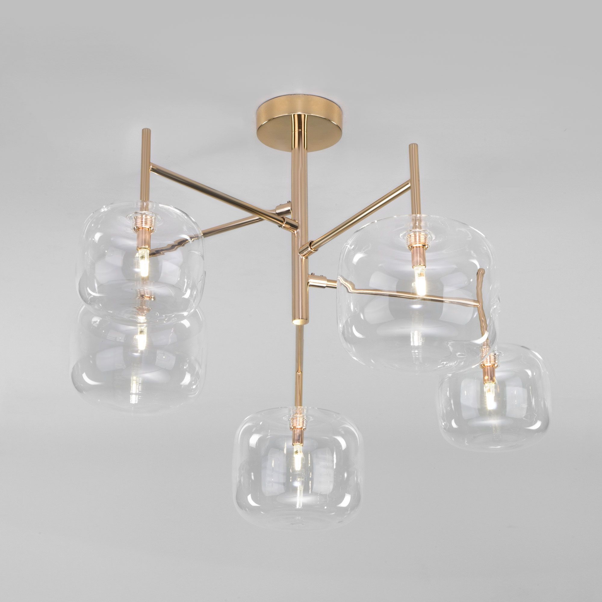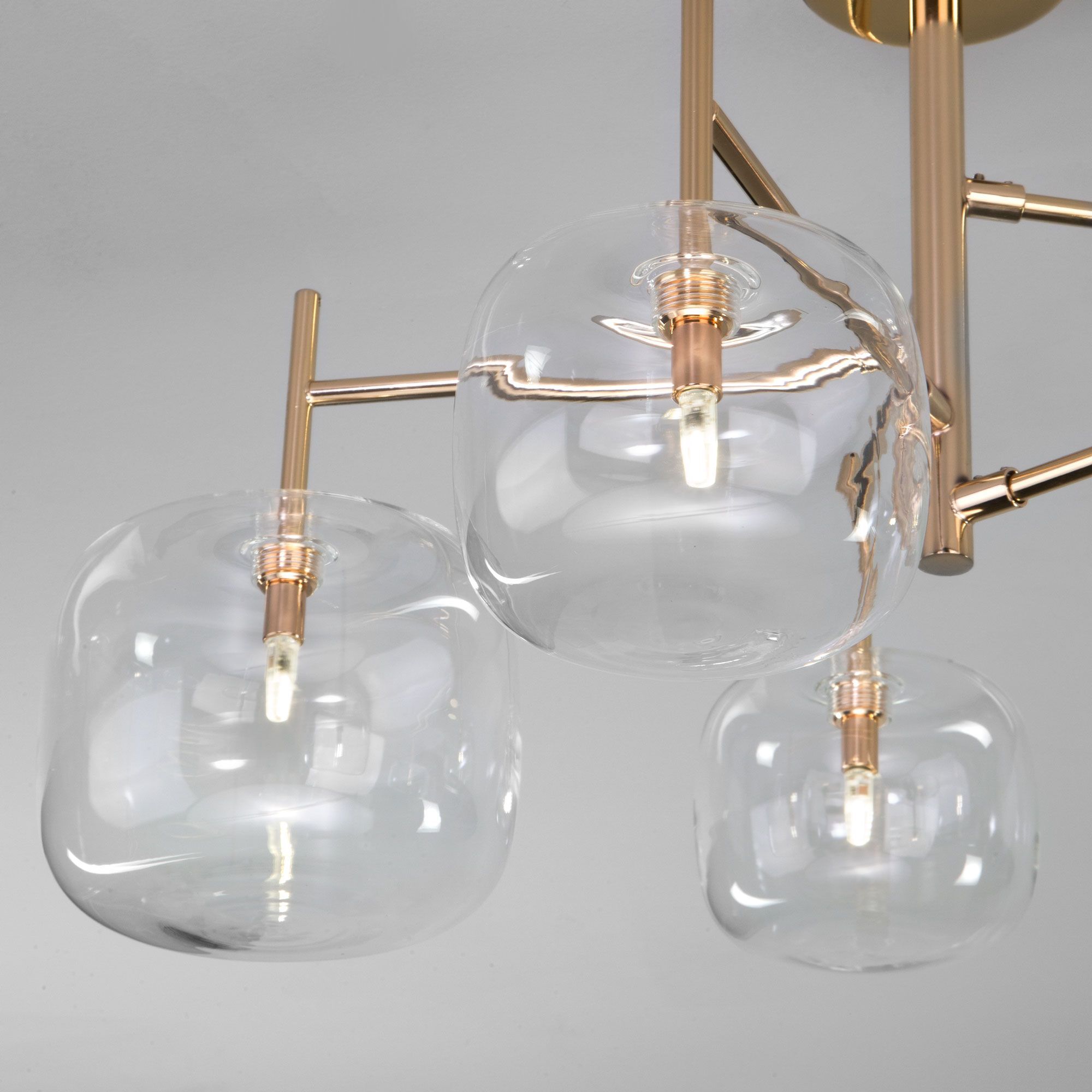 В люстре используются сменные лампы с цоколем G4, рассчитанные на максимальную мощность 3 Вт. Потолочный светильник оснащен стеклянными плафонами. В производстве светильника использован высококачественный металл с надежным защитным покрытием и закаленное стекло.